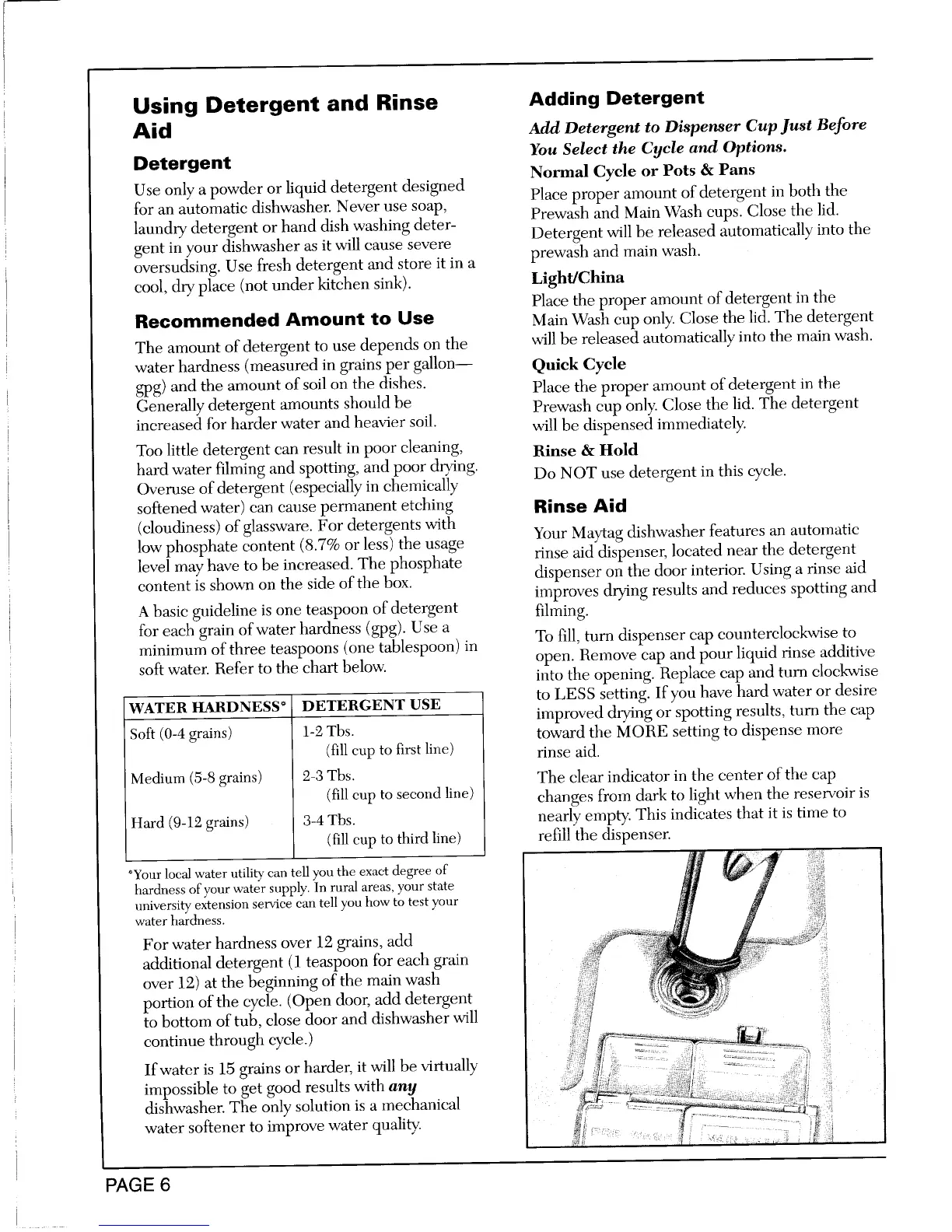 soft water. Refer to the chart below, open. Remove cap and pour liquid rinse additive