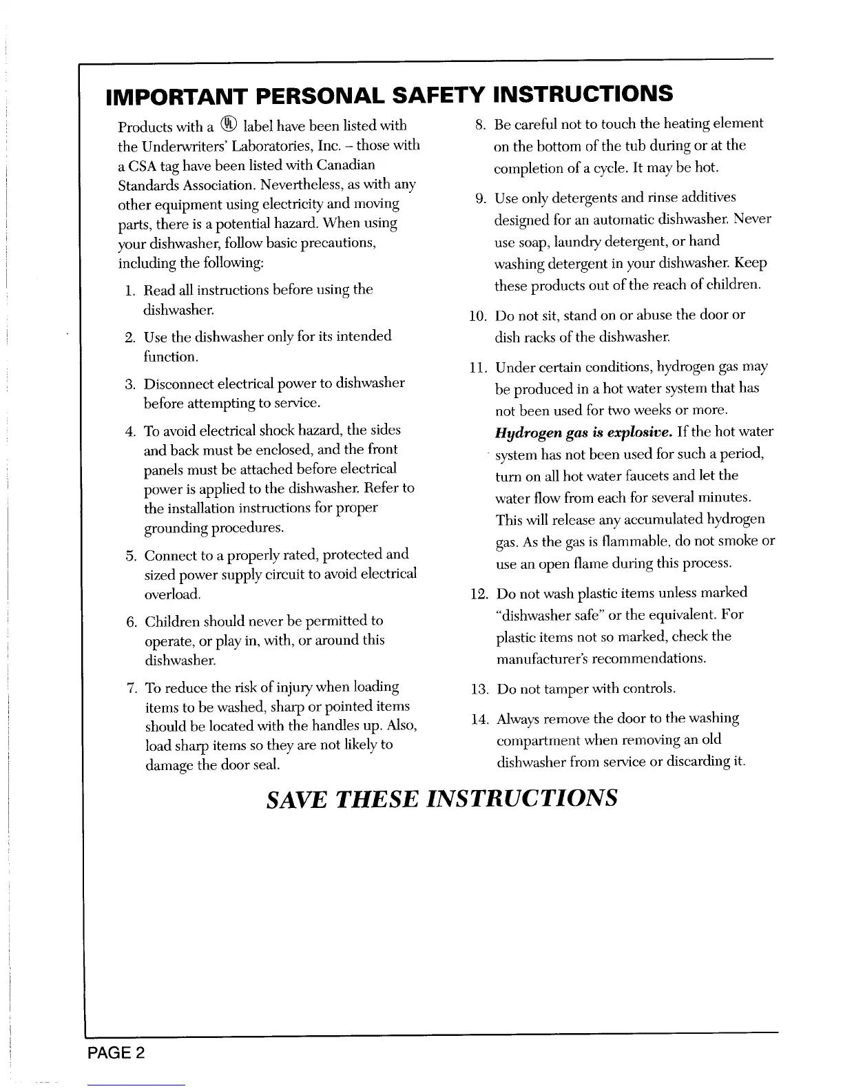 IMPORTANT PERSONAL SAFETY INSTRUCTIONS