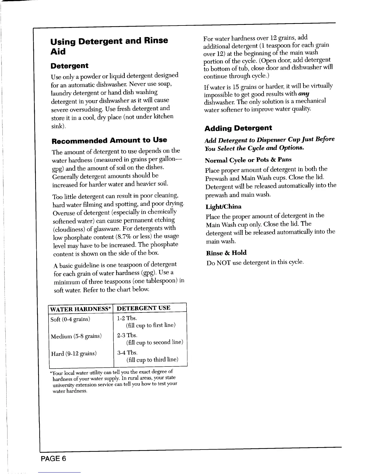 Using Detergent and Rinse For water hardness over 12 grains, add