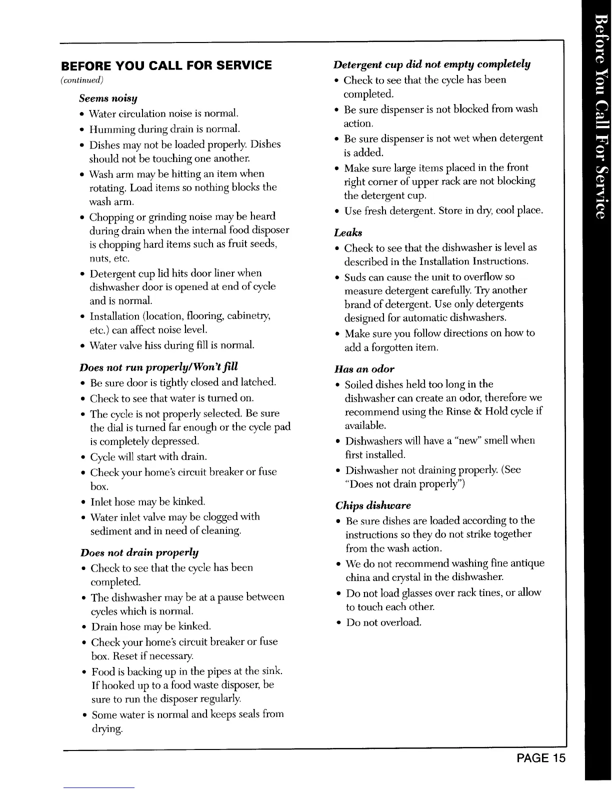 BEFORE YOU CALL FOR SERVICE Detergent cup did not empty completely