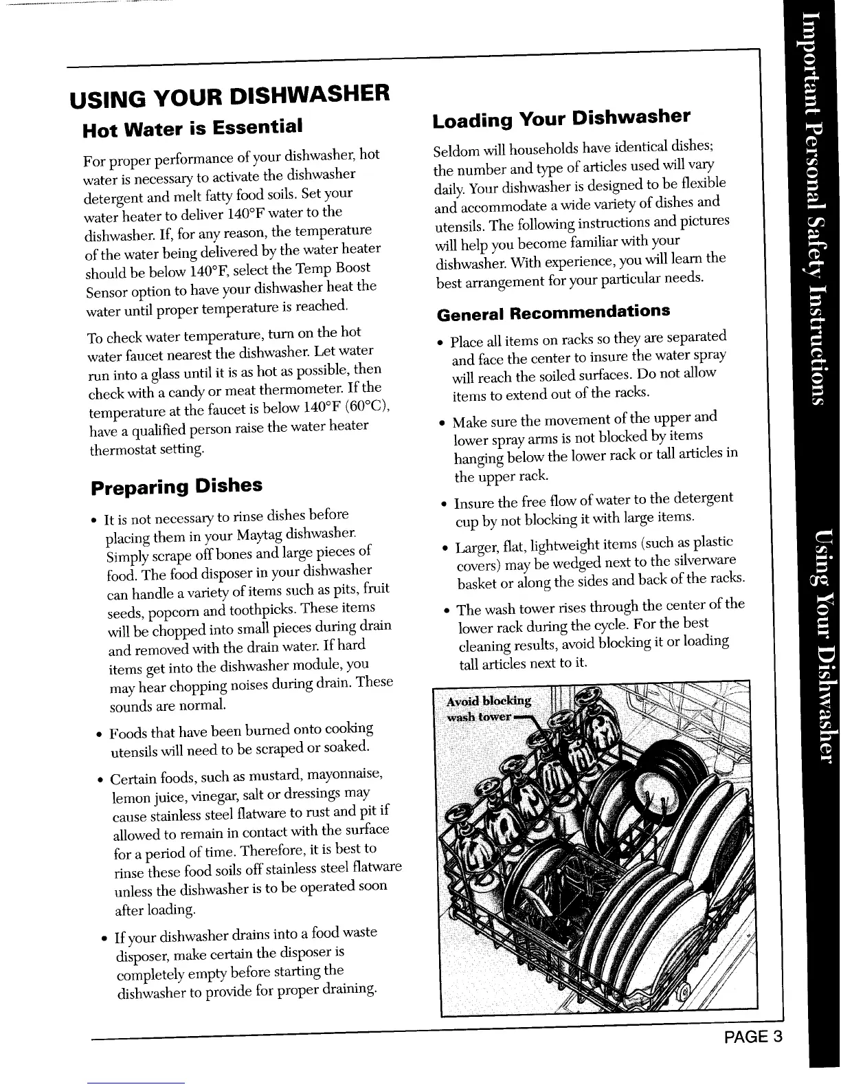 For proper performance of your dishwasher, hot Seldom will households have identical dishes;