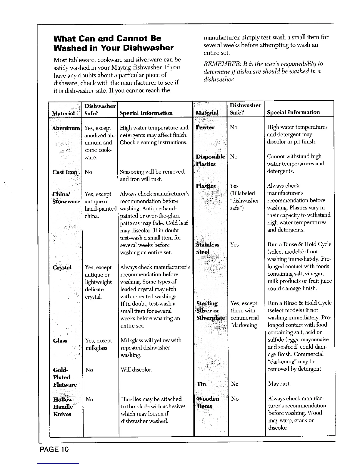 safely washed in your Maytag dishwasher. If you REMEMBER: It is the user's responsibility to
