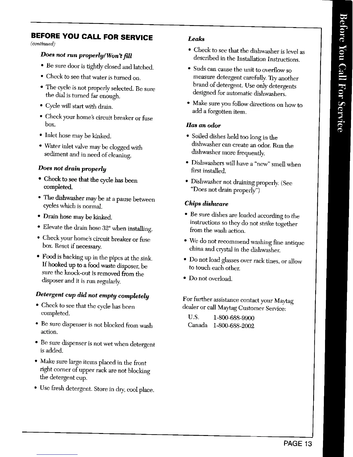 • Check to see that the cycle has been dealer or call Maytag Customer Service:
