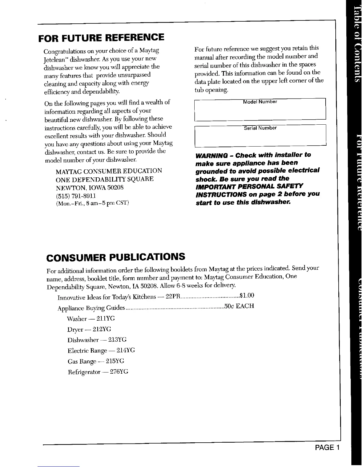Congratulations oll your choice of a Maytag For future reference we suggest you retain this