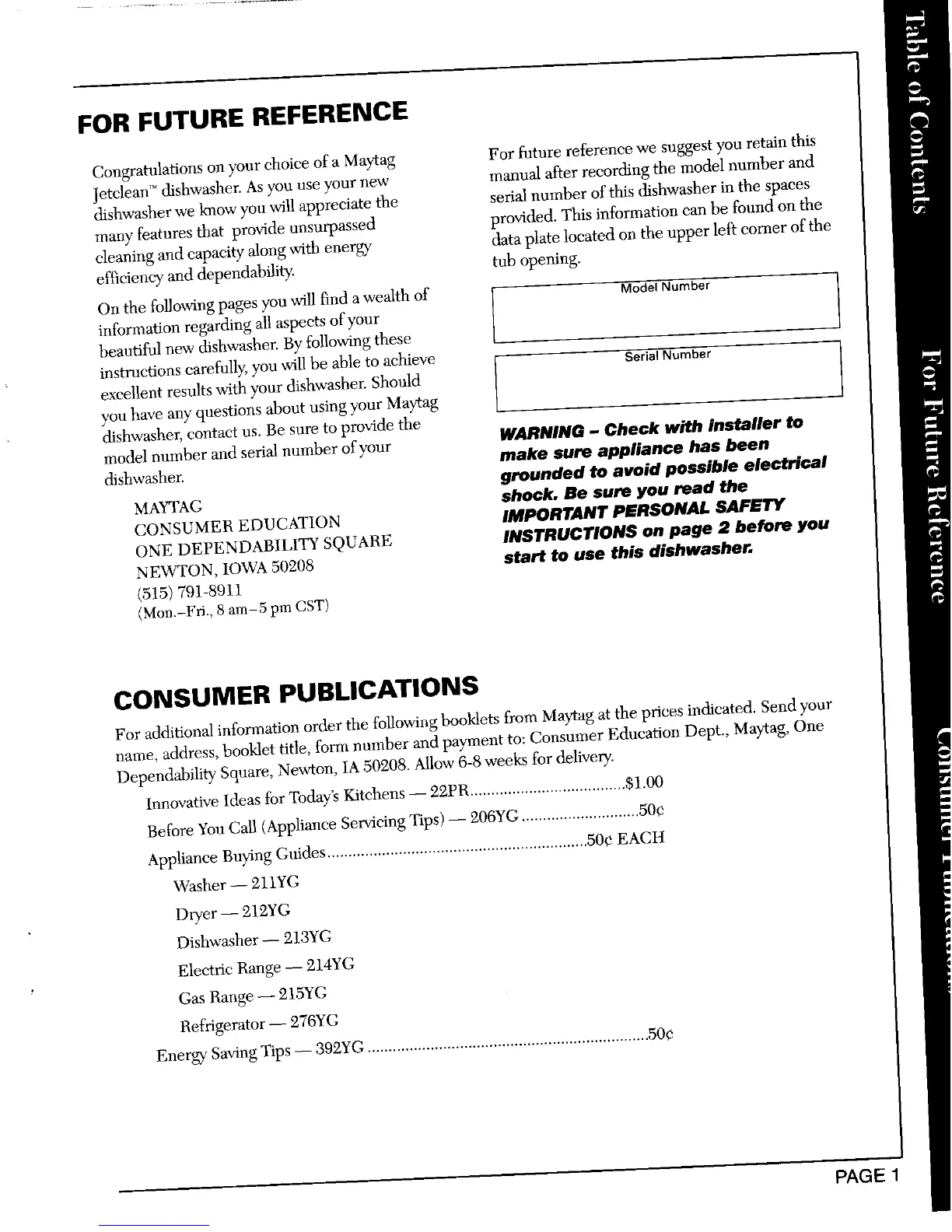 name, address, booklet title, form number and payment to: Consumer Education Dept., Maytag, One