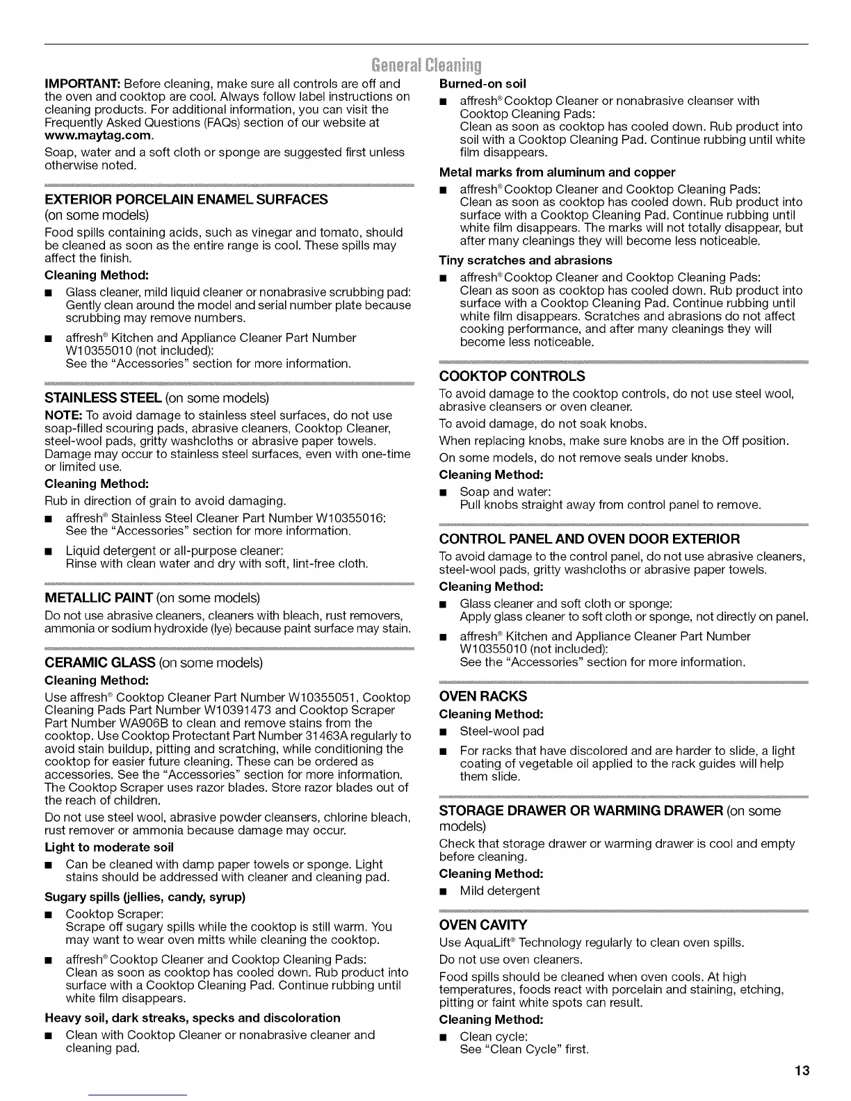 • affresh®Cooktop Cleaner and Cooktop Cleaning Pads: