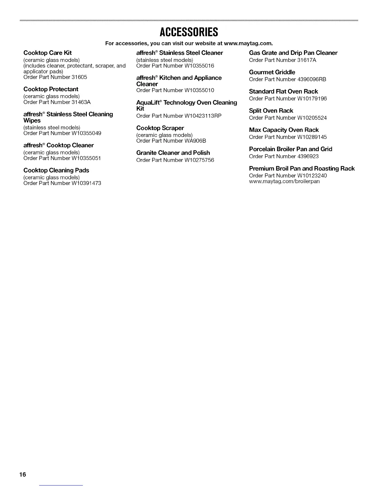 For accessories, you can visit our website at www.maytag.com.