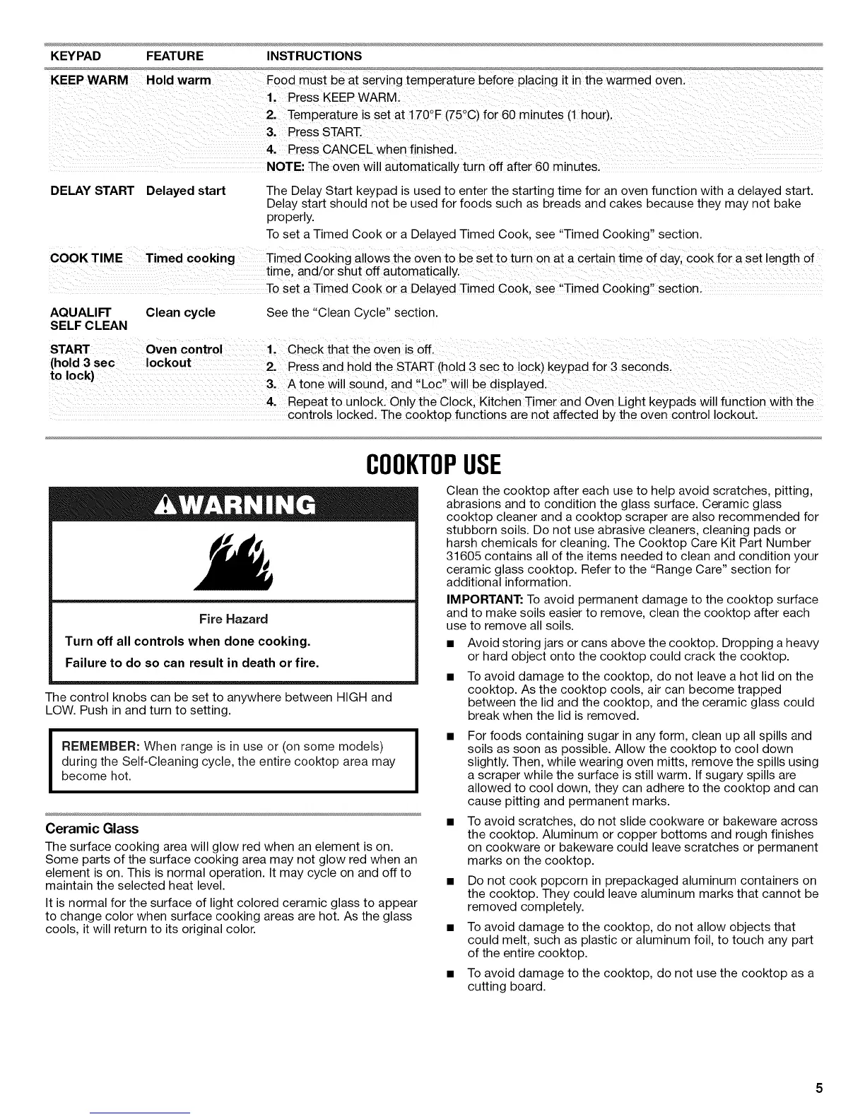 ceramic glass cooktop. Refer to the "Range Care" section for