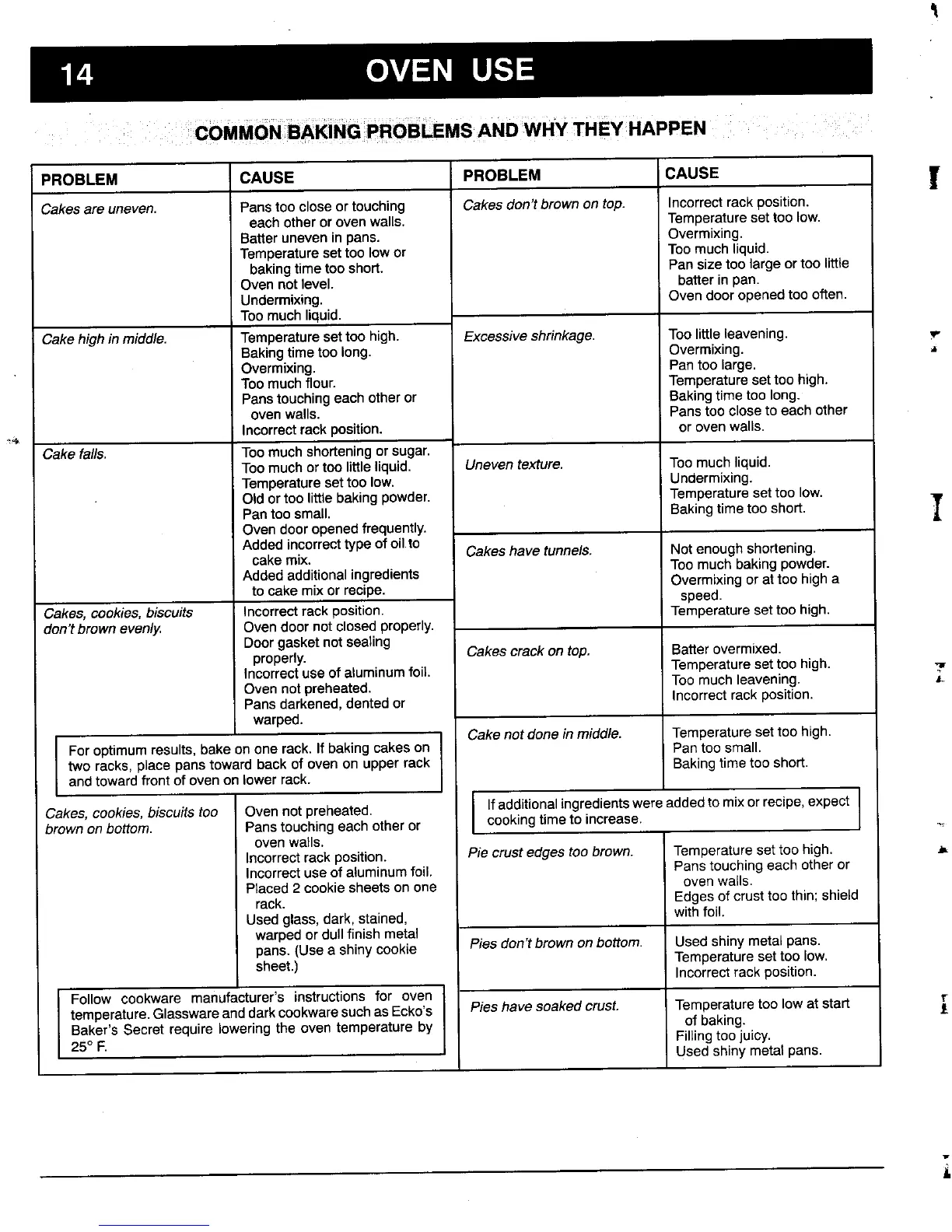 Incorrectrack position. Piecrust edges toobrown. Temperatureset too high. _=