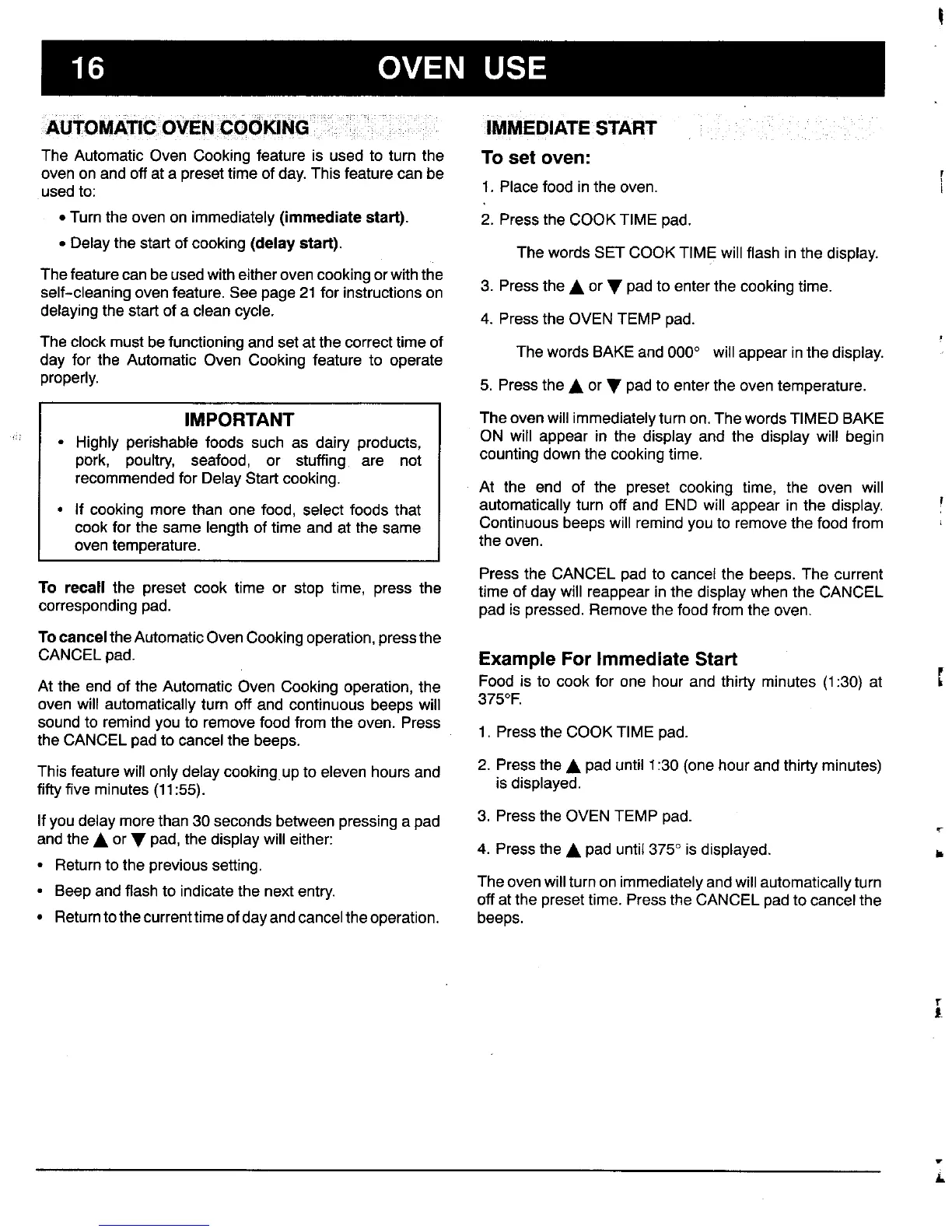 recommendedfor DelayStart cooking. At the end of the preset cooking time, the oven will