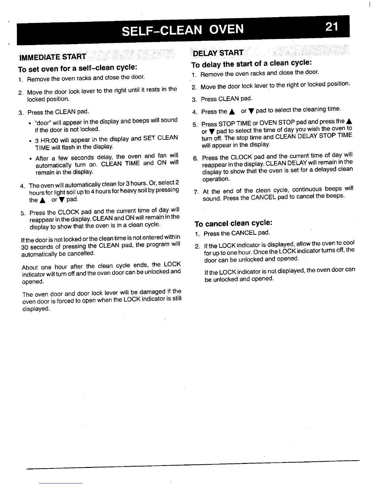 To set ovenfor a self-clean cycle: To delay the start of a clean cycle: