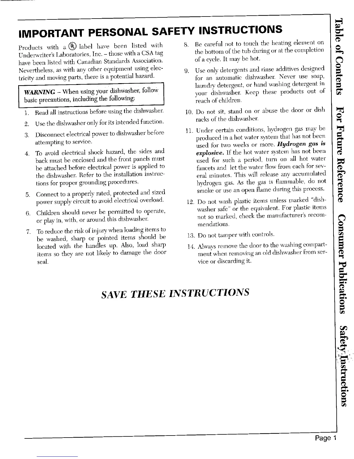1. Read all instructions before using the dishwasher. 10. Do not sit stand on or abuse the door or dish