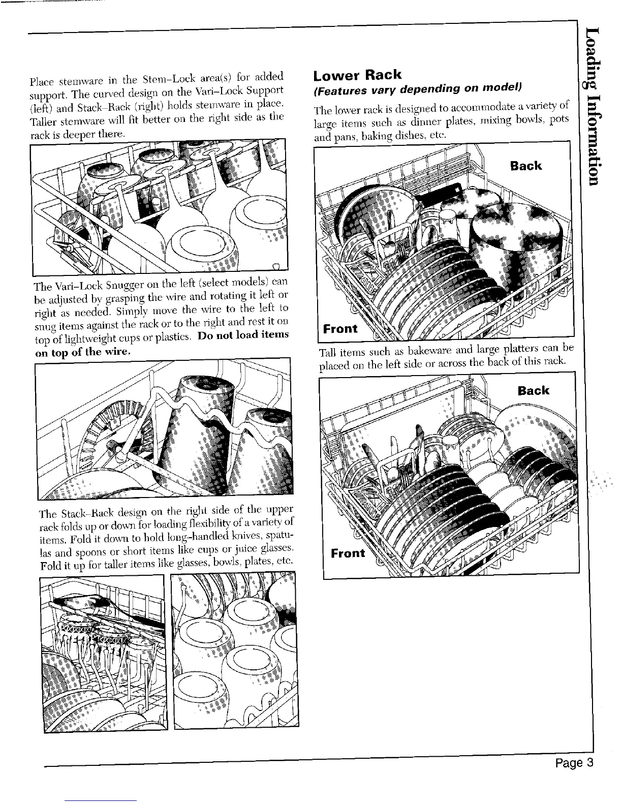 Taller stemware will fit better on the right side as the The lower rack is designed to accommodate a variety of _'_