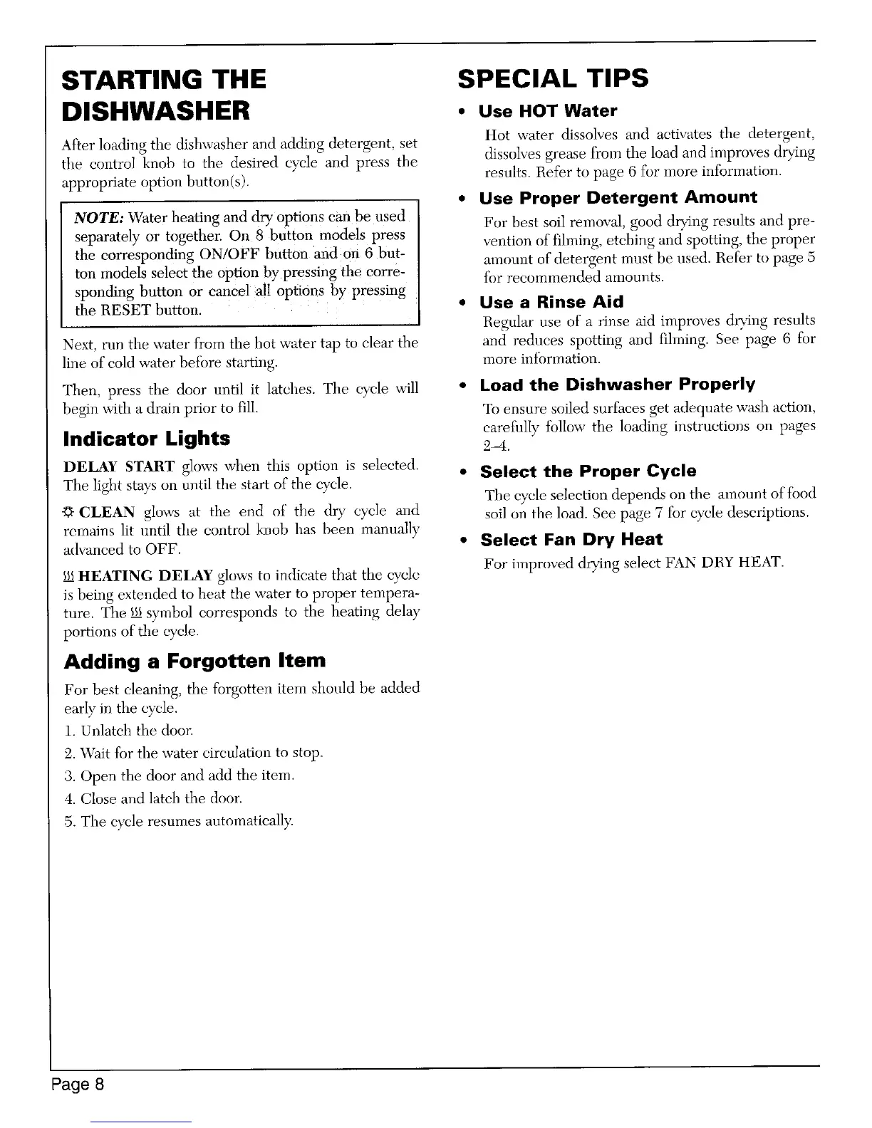 DISHWASHER • use HOT Water