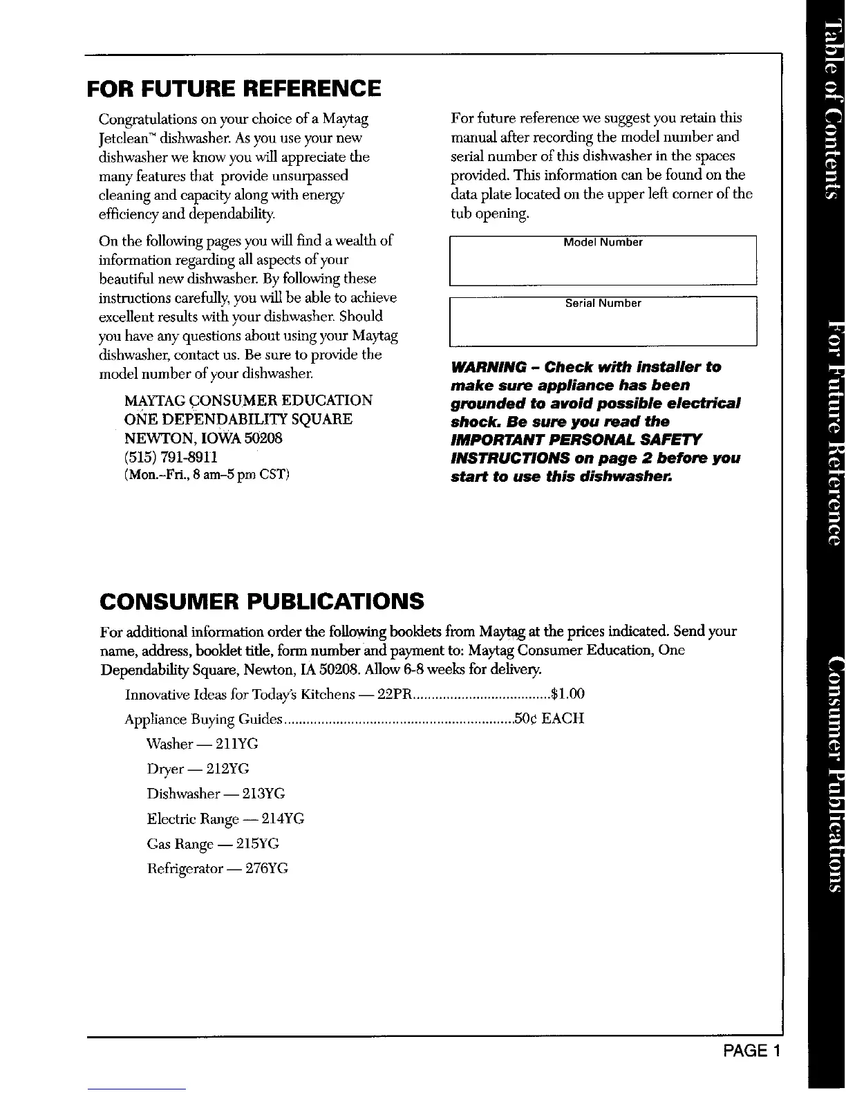 MAYTAG ,CONSUMER EDUCATION grounded to avoid possible electrical