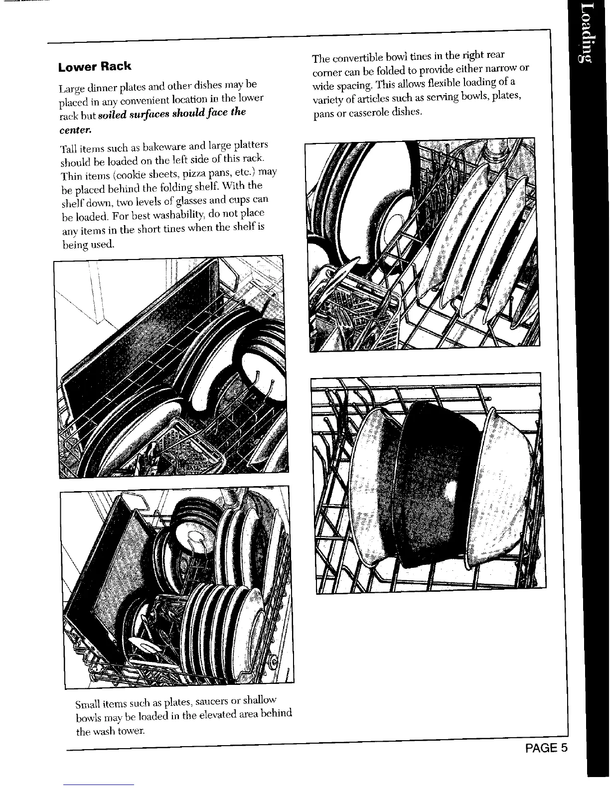 Lower Rack The convertible bowl tines in the right rear