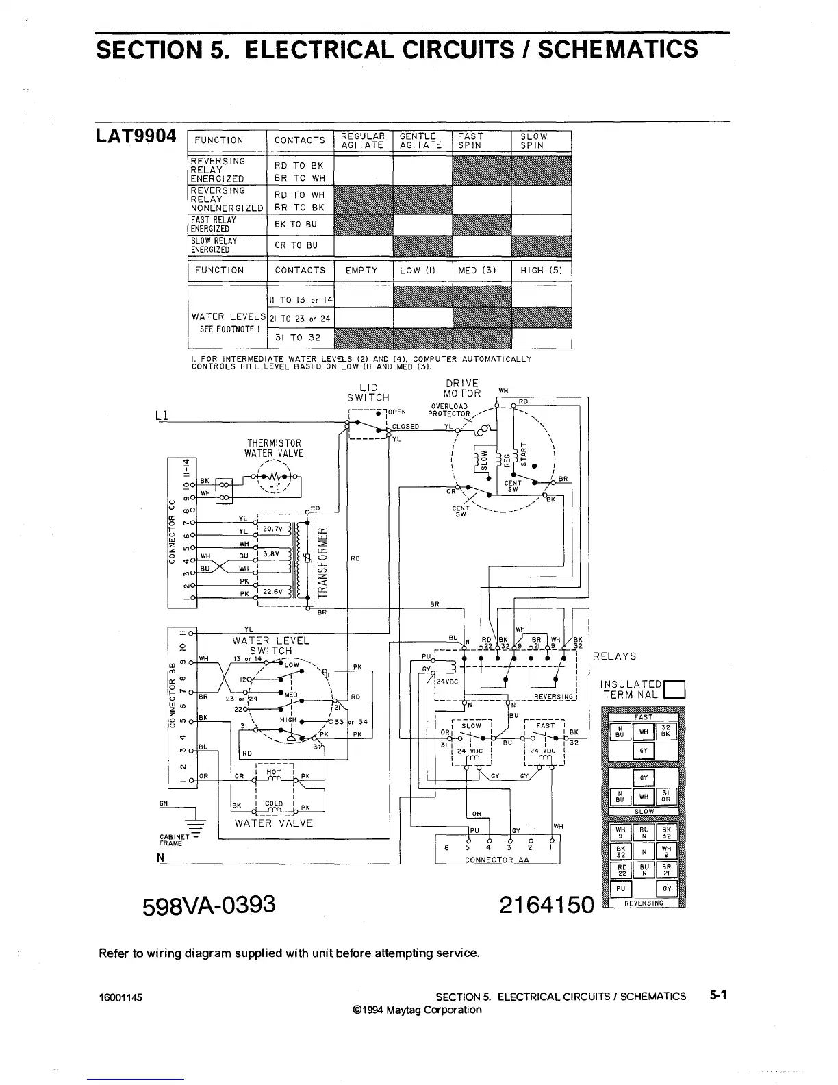 Maytag LAT2500 - SECTION 5. ELECTRICAL CIRCUITS; SCHEMATICS; LAT9904