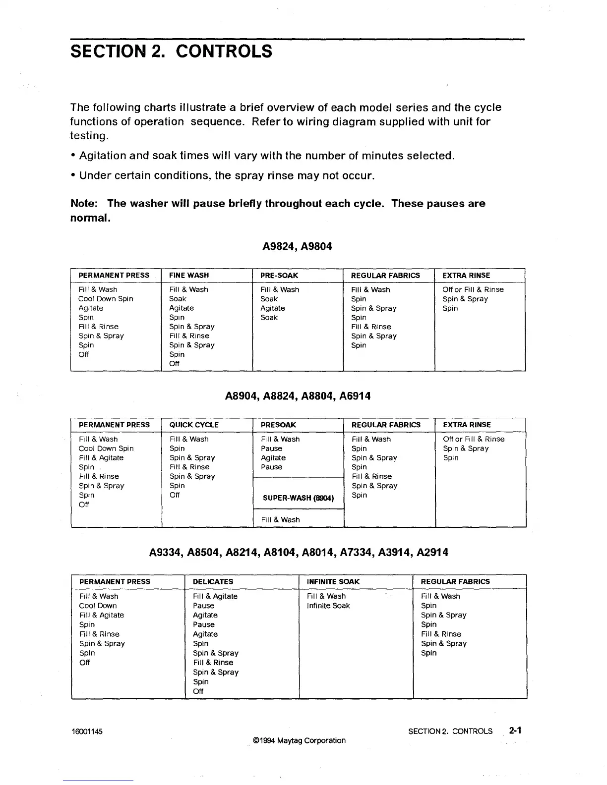 Note: The washer will pause briefly throughout each cycle. These pauses