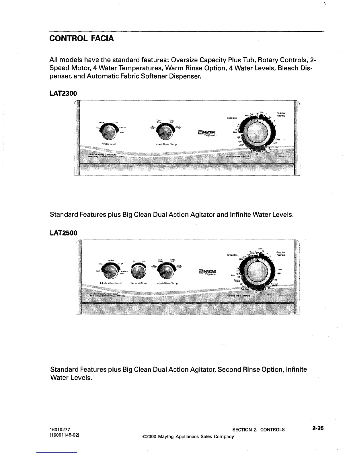 All models have the standard features: Oversize Capacity Plus Tub, Rotary Controls,