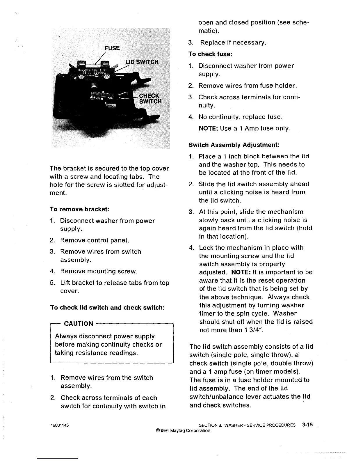 Maytag LAT8014 - Check Fuse; Switch Assembly Adjustment