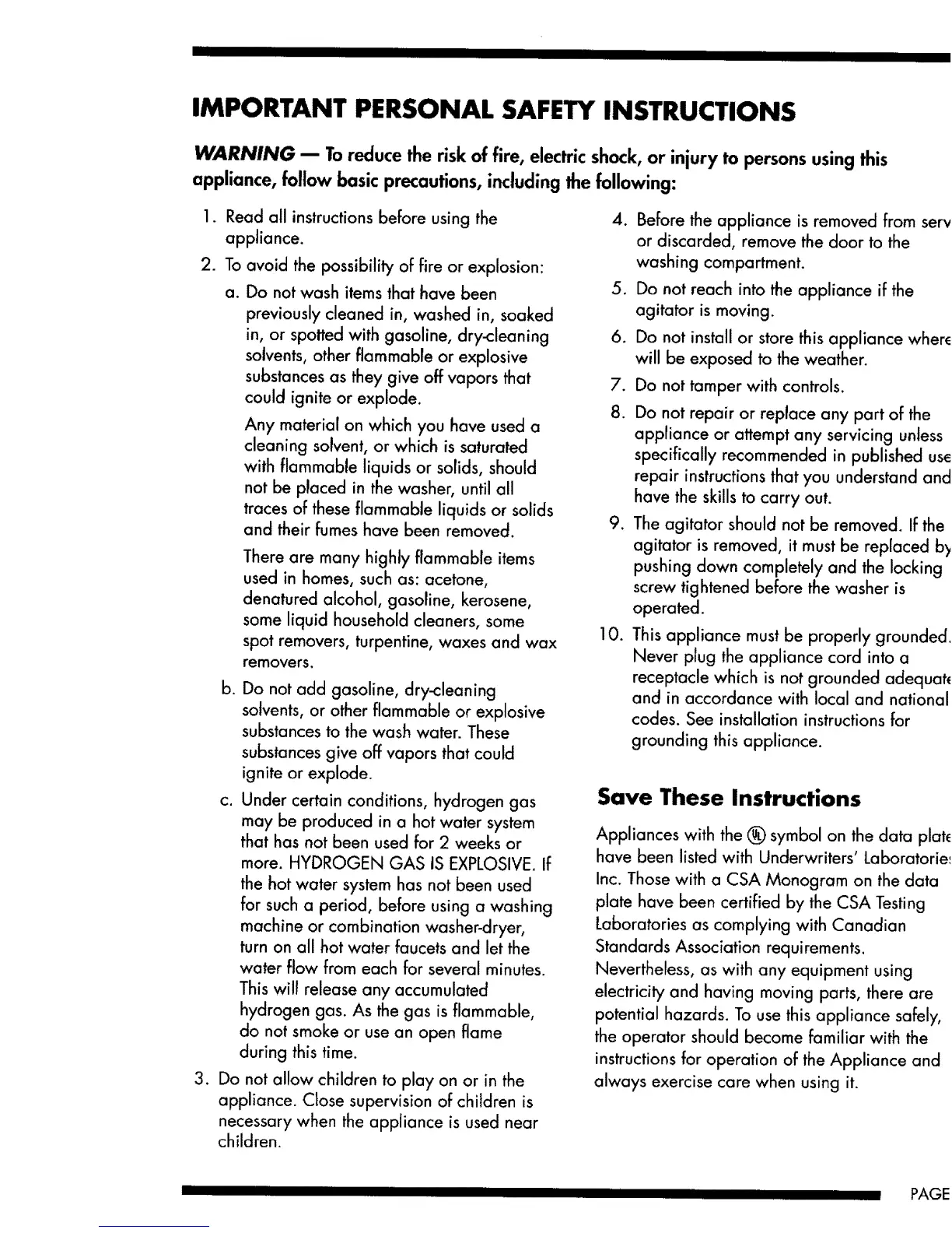 IMPORTANT PERSONAL SAFETY INSTRUCTIONS