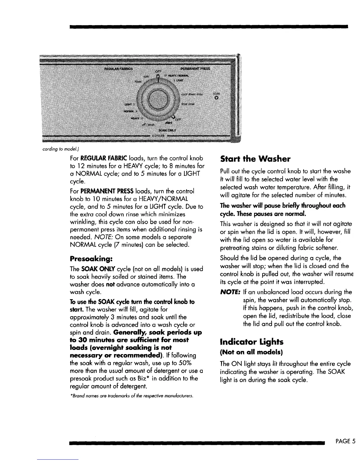 The SOAK ONLY cycle (not on all models) is used