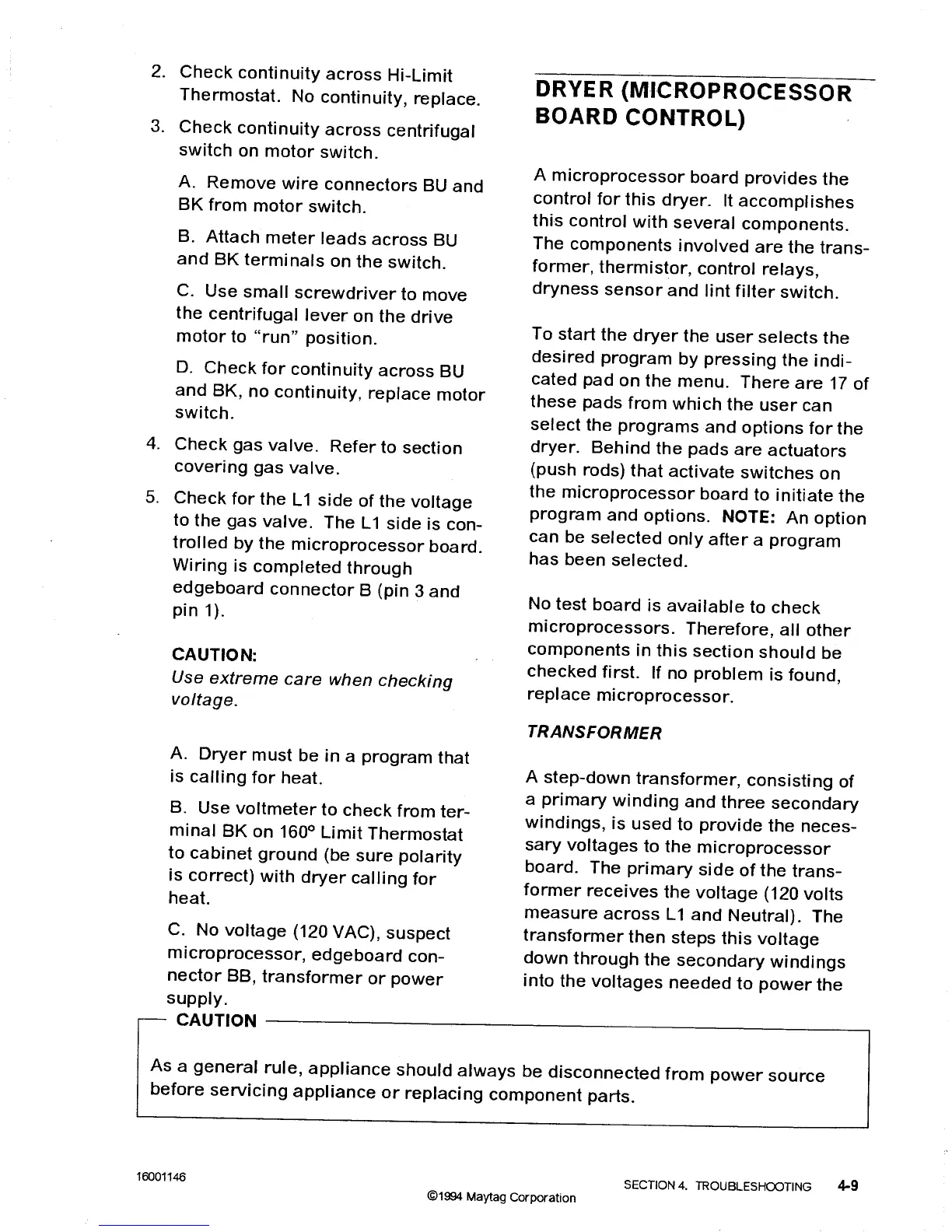 Maytag LD5004 - Dryer (Microprocessor Board Control); Transformer