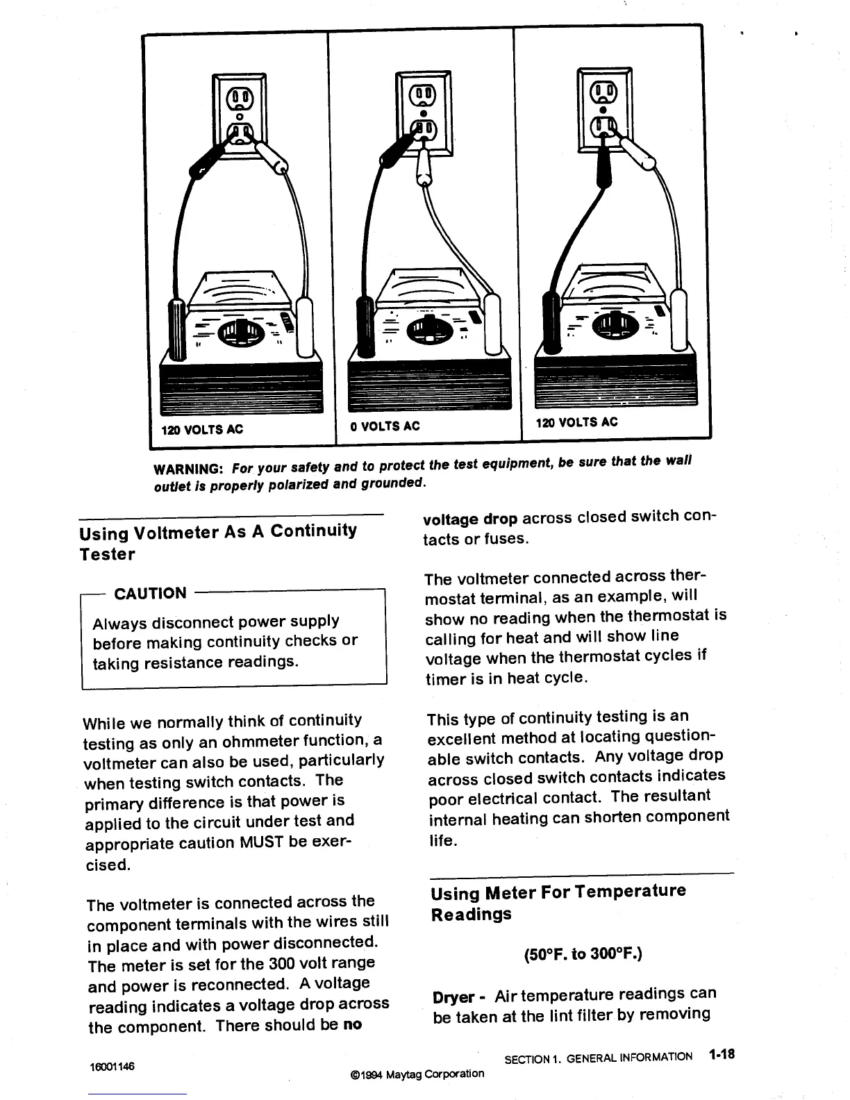 Maytag LD5004 - Using Voltmeter as a Continuity Tester; Using Meter for Temperature Readings