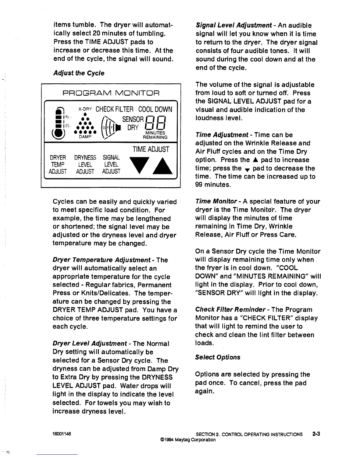 Maytag LD5004 - Dryer Temperature Adjustment; Adjust the Cycle; Signal Level Adjustment; Time Adjustment