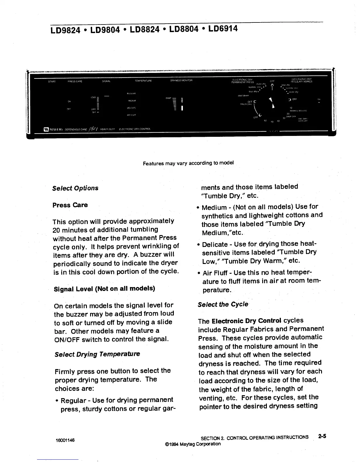 Maytag LD5004 - Select Options; Select Drying Temperature