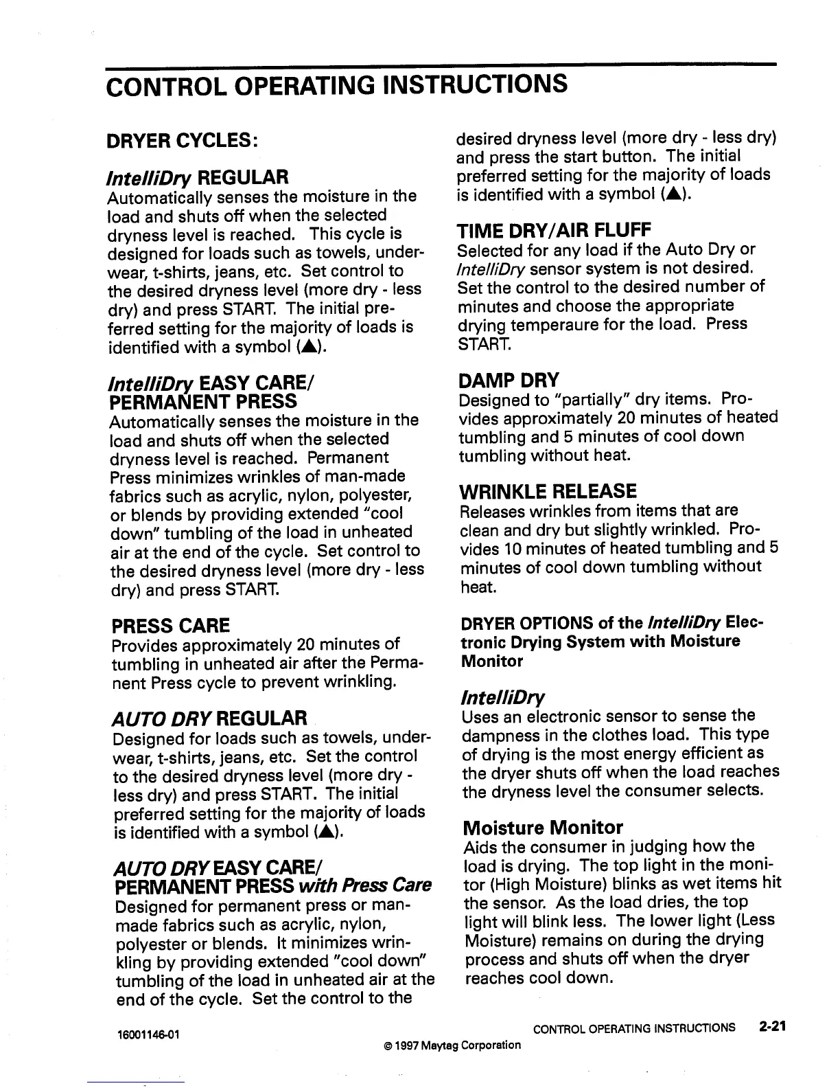 Maytag LD5004 - Time Dry;Air Fluff; Dryer Cycles; Moisture Monitor; Auto Dry Regular