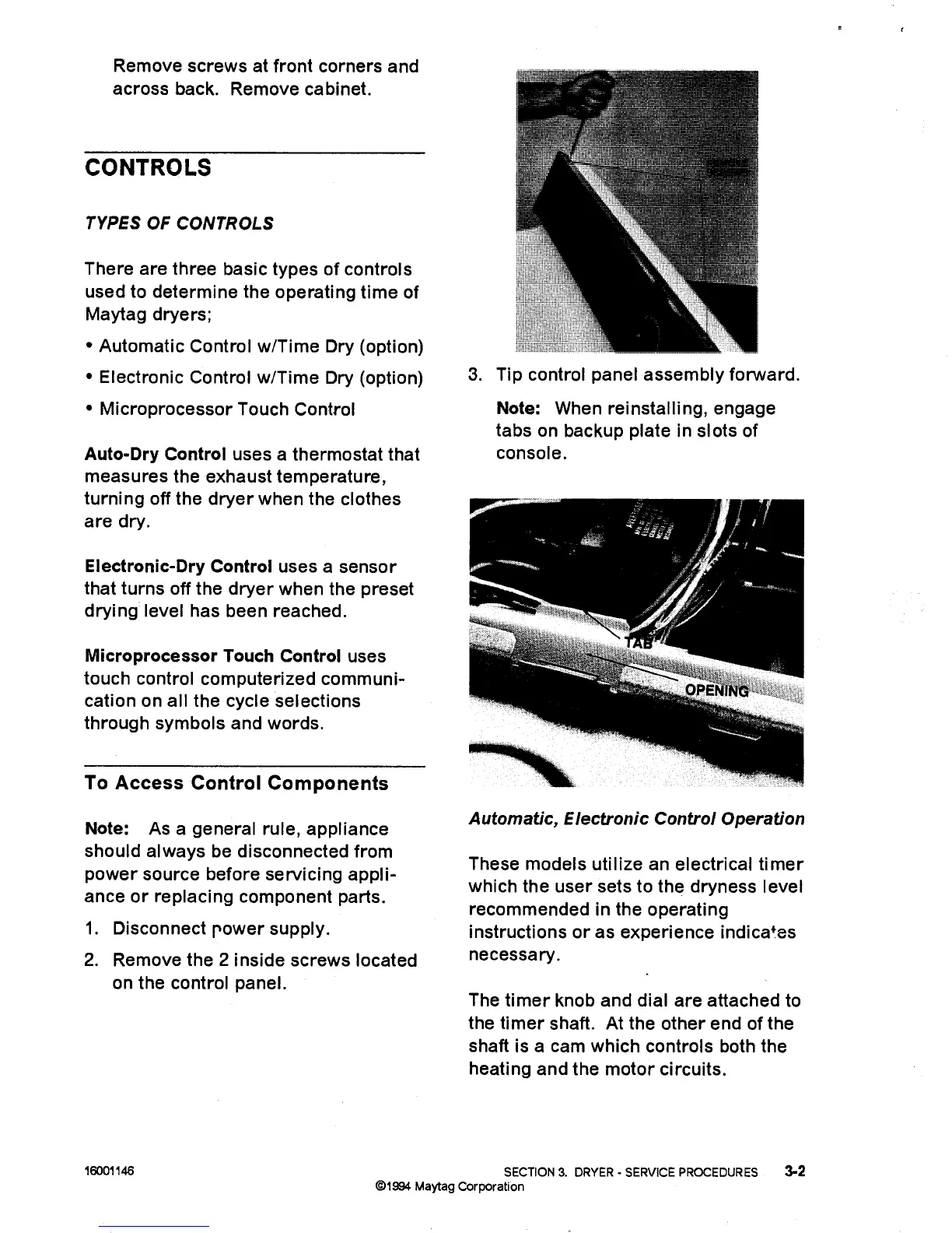 Maytag LD5004 - Types of Controls; To Access Control Components; Automatic, Electronic Control Operation