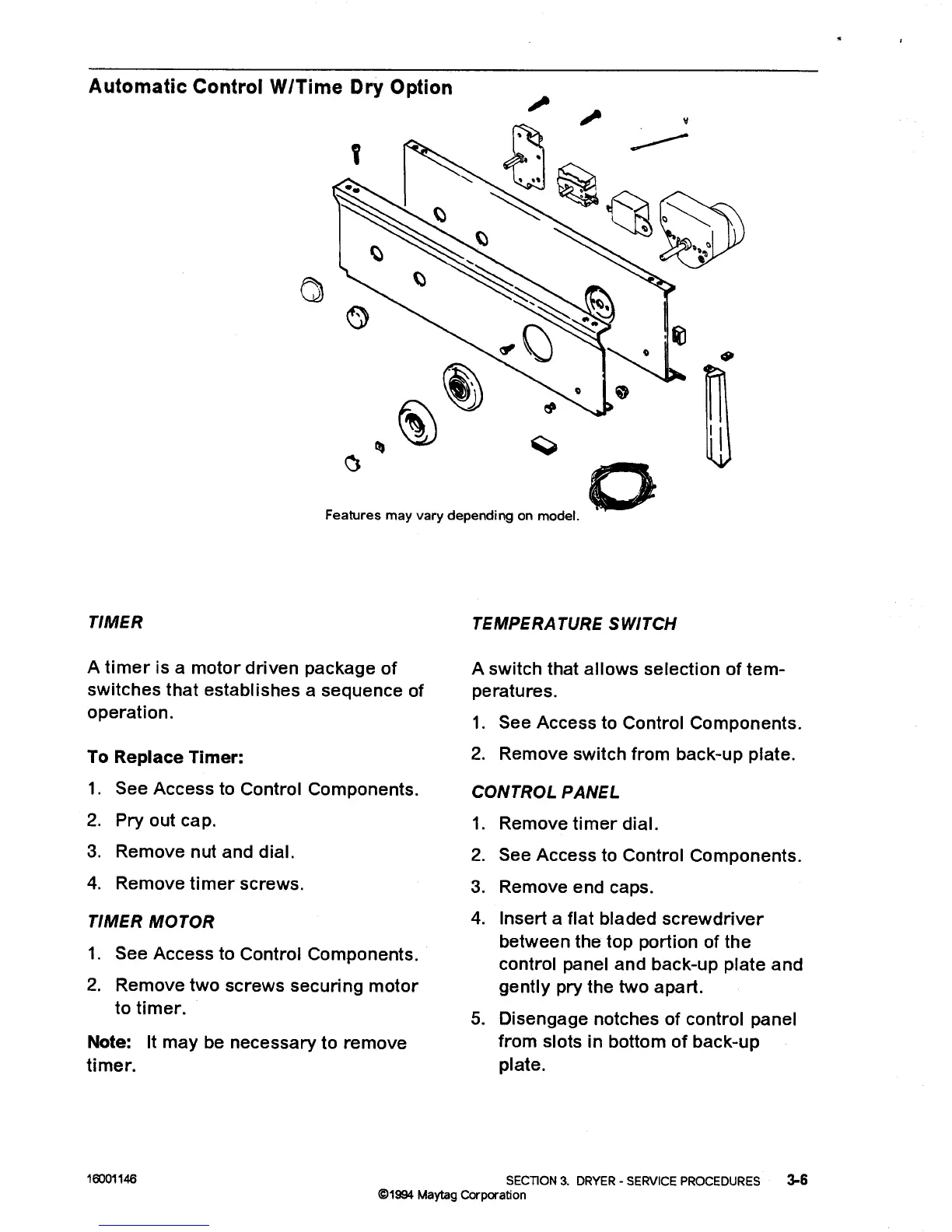 Maytag LD5004 - Automatic Control W;Time Dry Option; To Replace Timer; Timer Motor; Control Panel