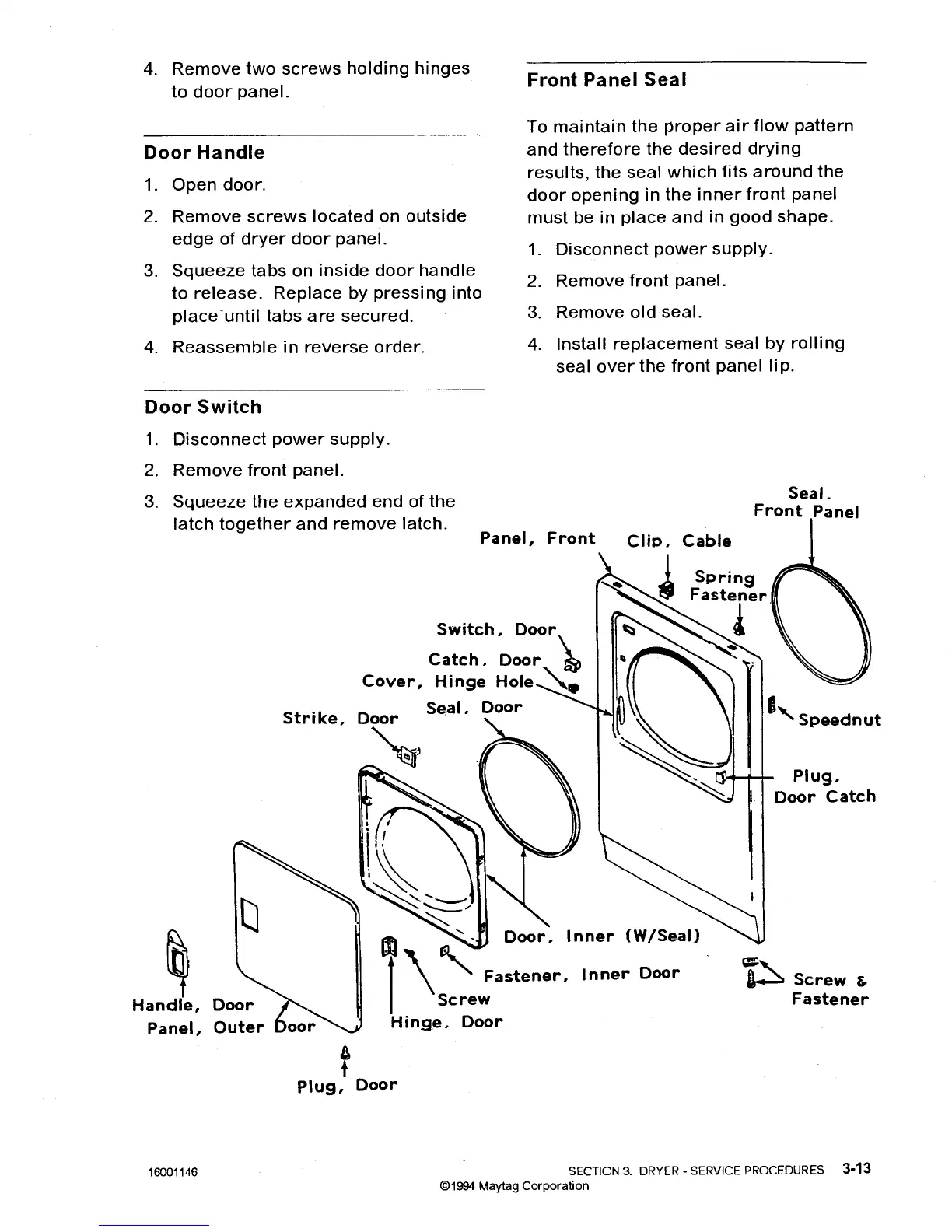 Maytag LD5004 - Door Handle; Door Switch; Front Panel Seal