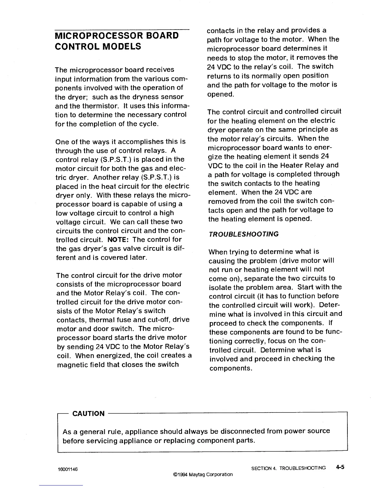 Maytag LD5004 - Microprocessor Board Control Models Troubleshooting