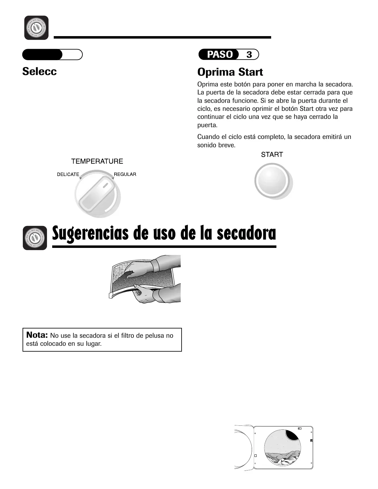 La puerta de la secadora debe estar cerrada para que