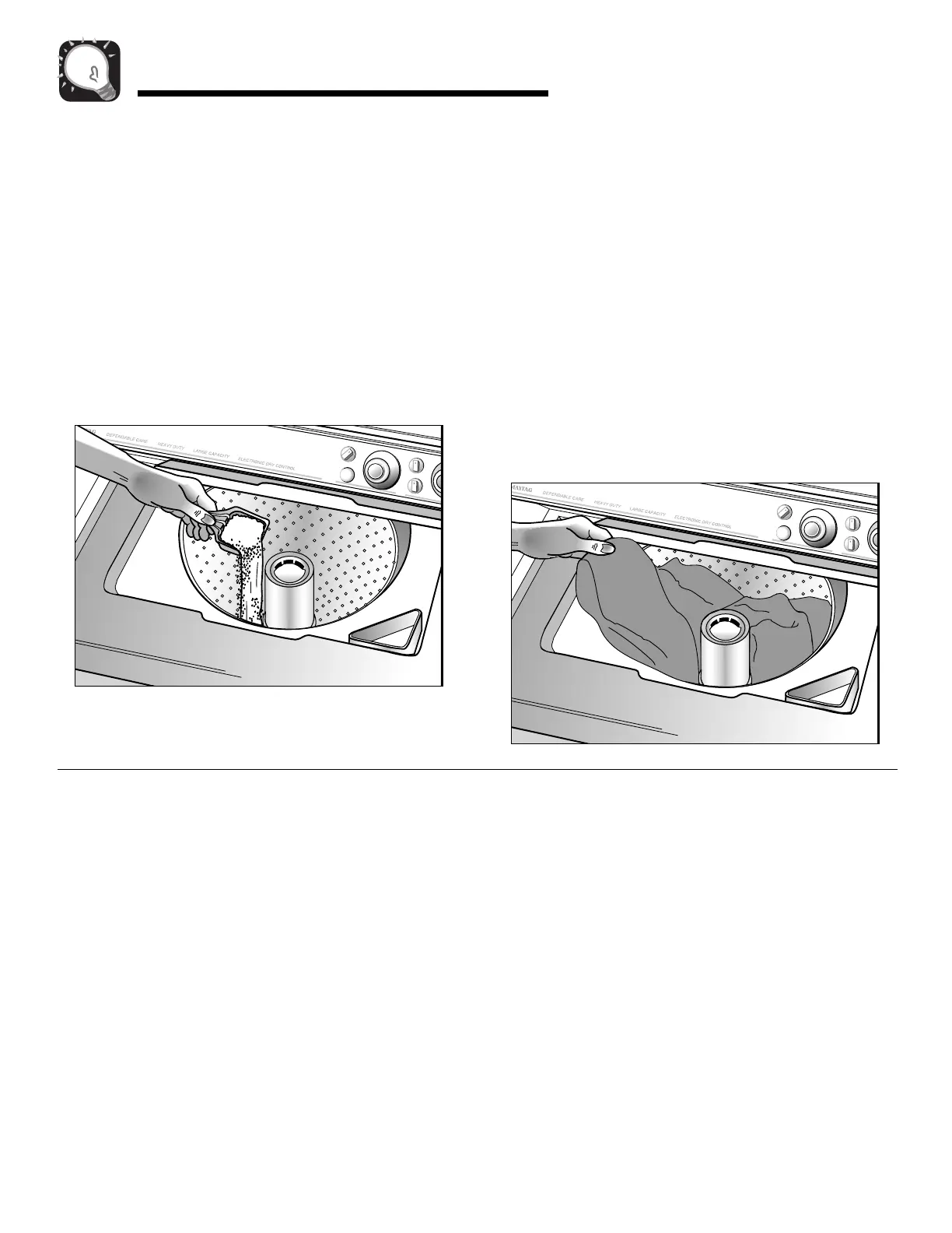 • Put dry, unfolded clothes loosely in the tub, up to