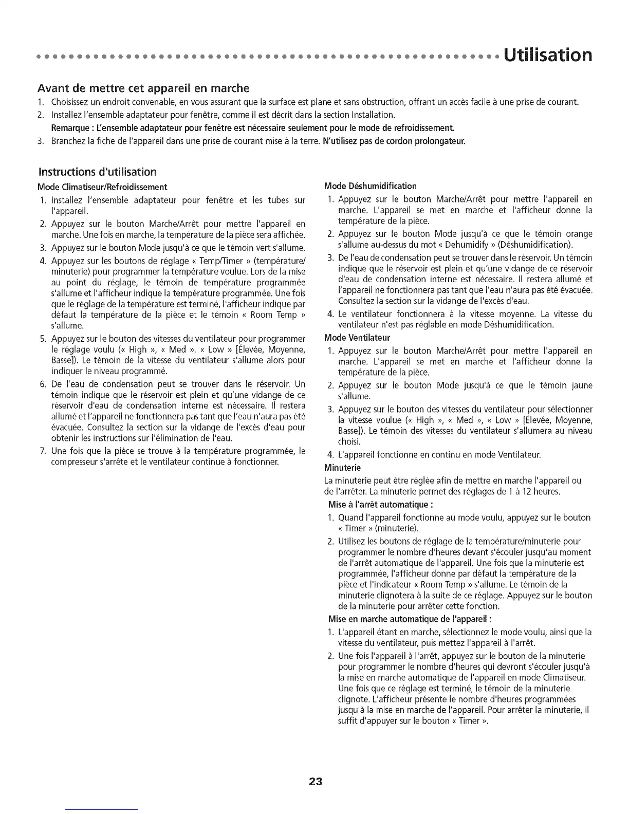 jusqu'_ la raiseen marche de I'appareil. Pour arr_ter la minuterie, il