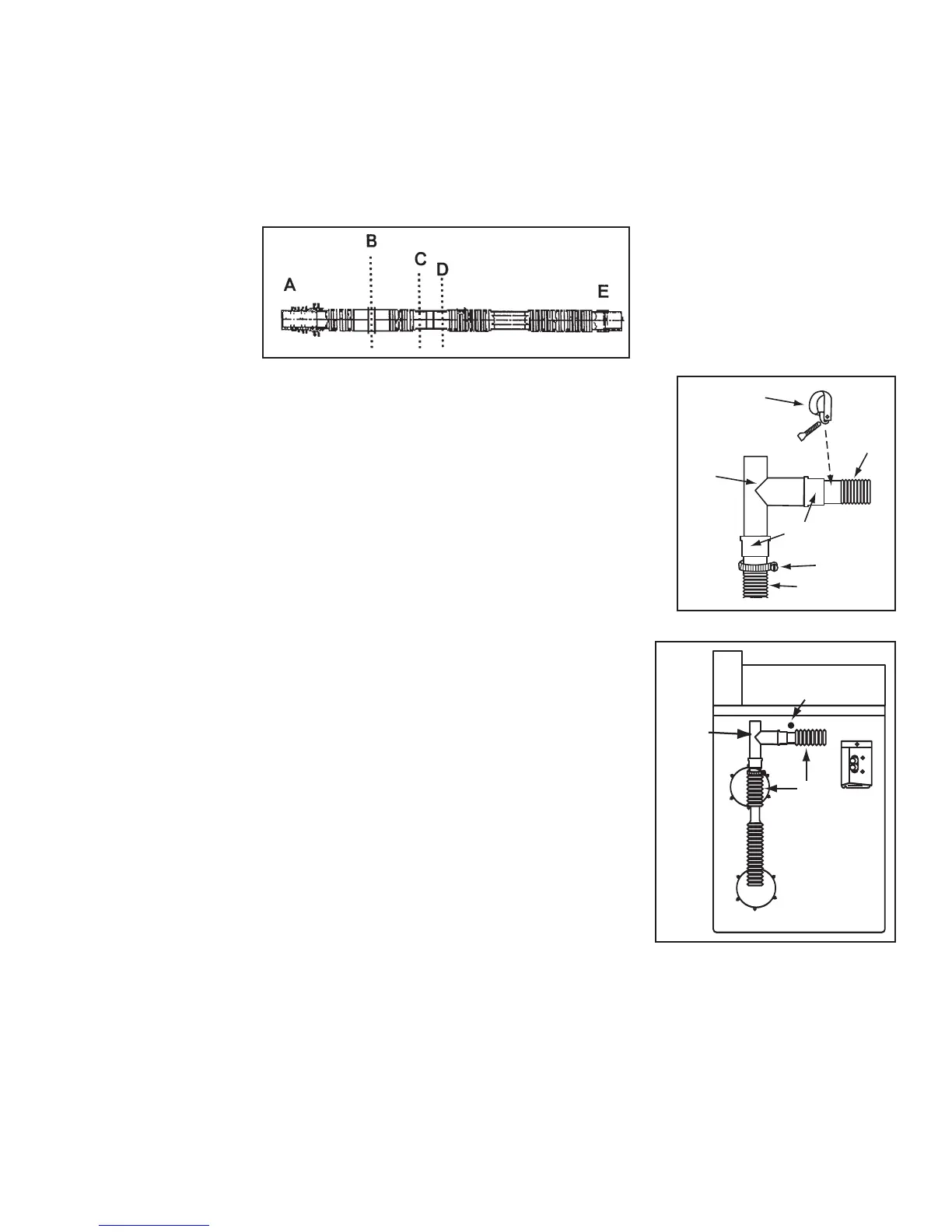 1. Cut the corrugated drain hose at the center of the larger straight section position B.