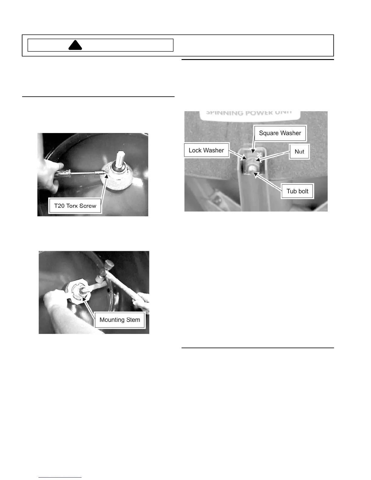 Note: When replacing tub bolt and nuts, just get them