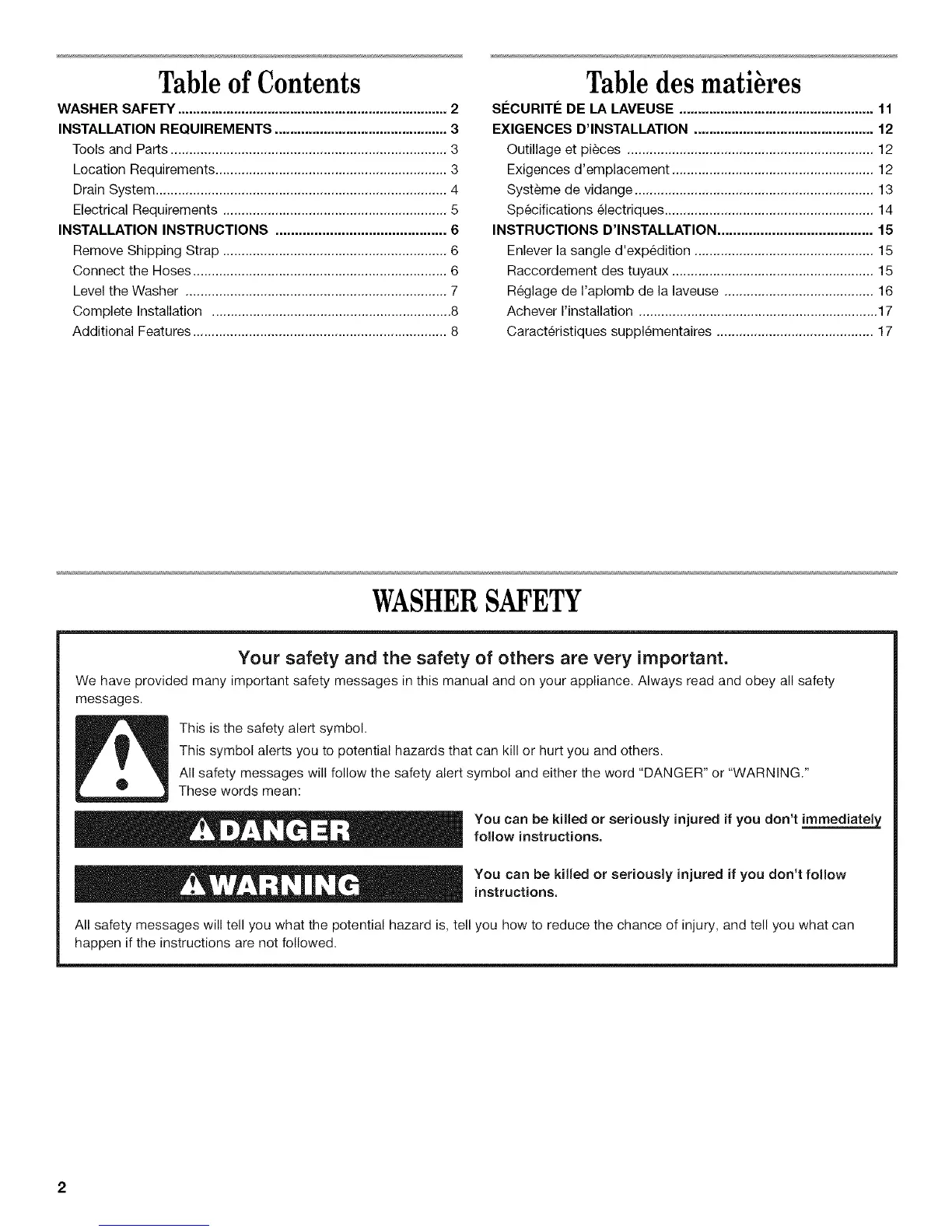 WASHER SAFETY ........................................................................ 2