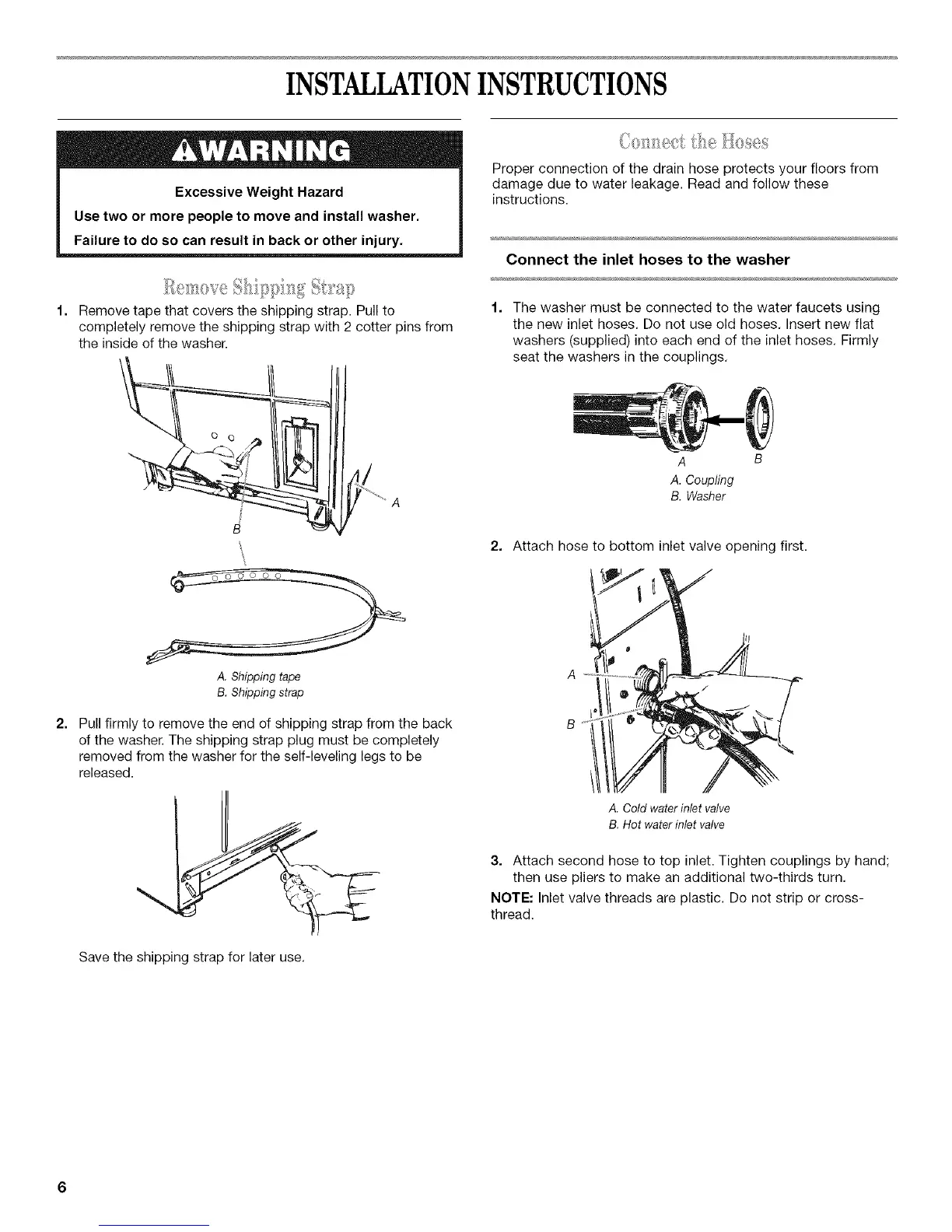 of the washer. The shipping strap plug must be completely