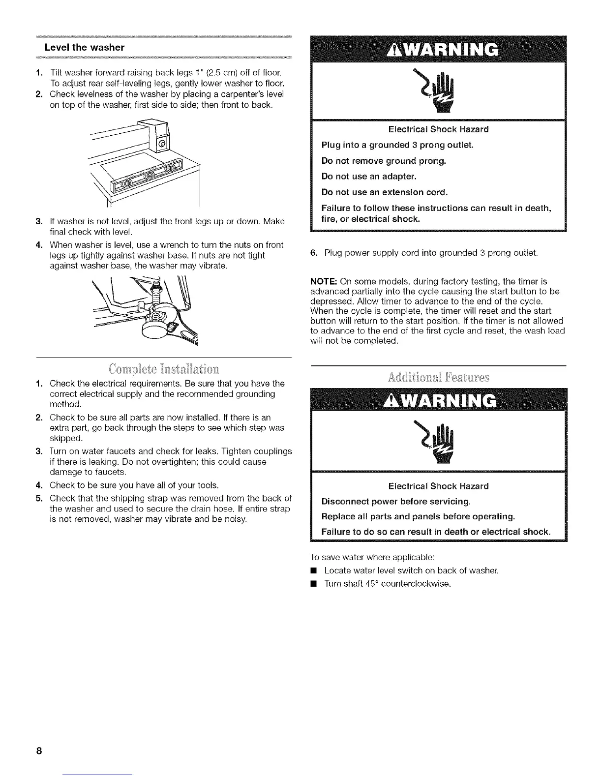 2. Check levelness of the washer by placing a carpenter's level