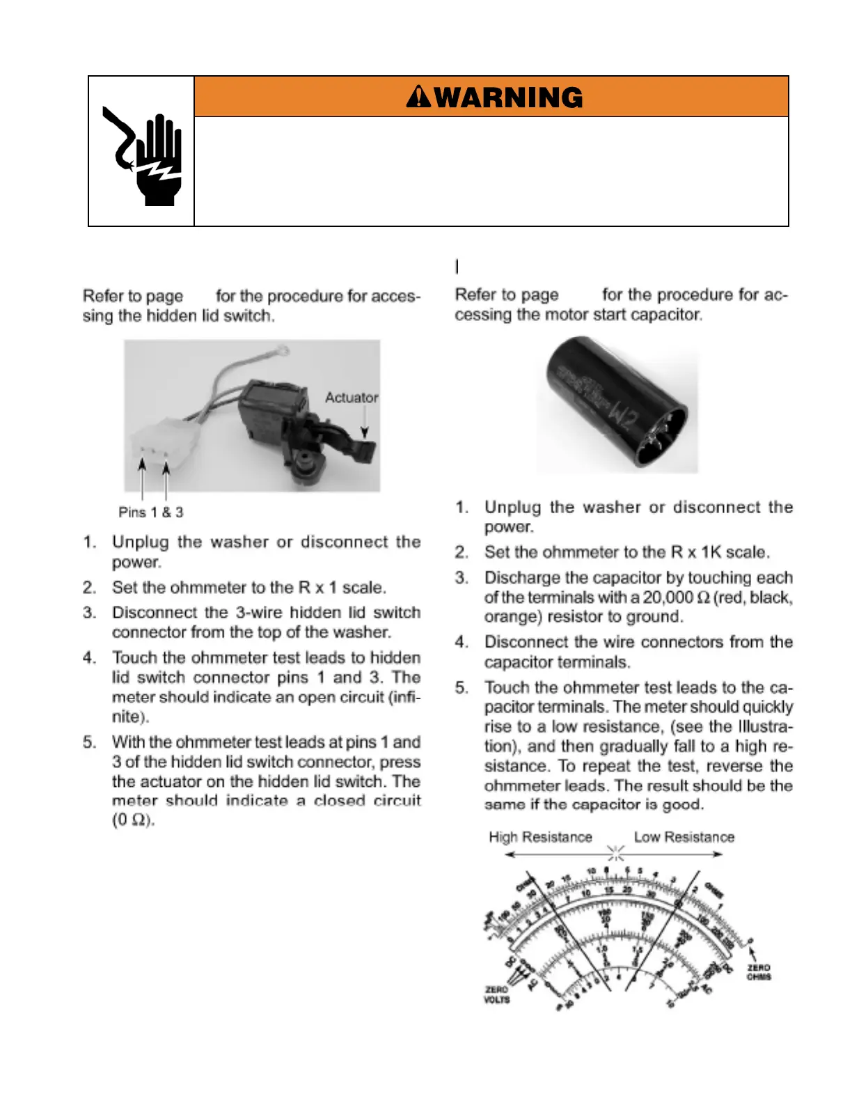 Maytag MAT15MN - Hidden Lid Switch Testing; Motor Start Capacitor Testing