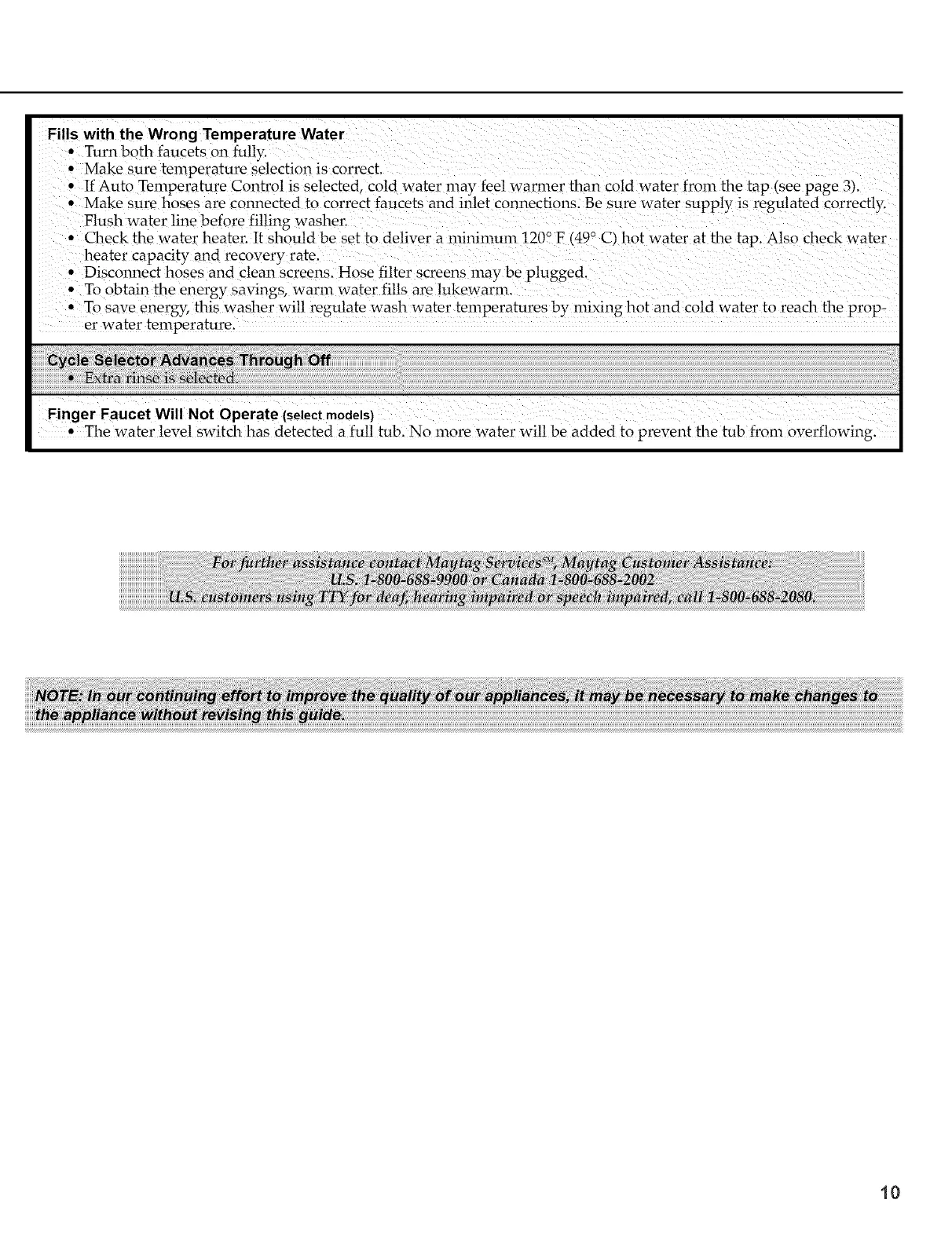 • Make sure hoses are connected to correct faucets and inlet connections, Be sure water supply is regulated correctly.