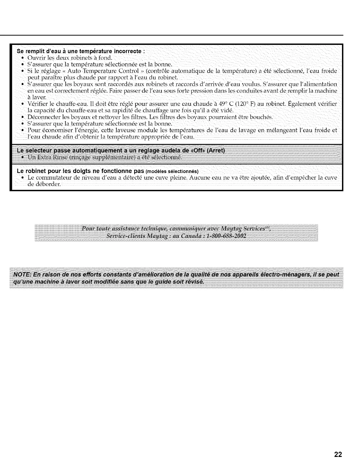 • V_rifier le chauffe-eau. I1 doit Otre rOgt_ pour assurer une eau chaude h 49° C (120 ° F) au robinet. Egalement v_rifier