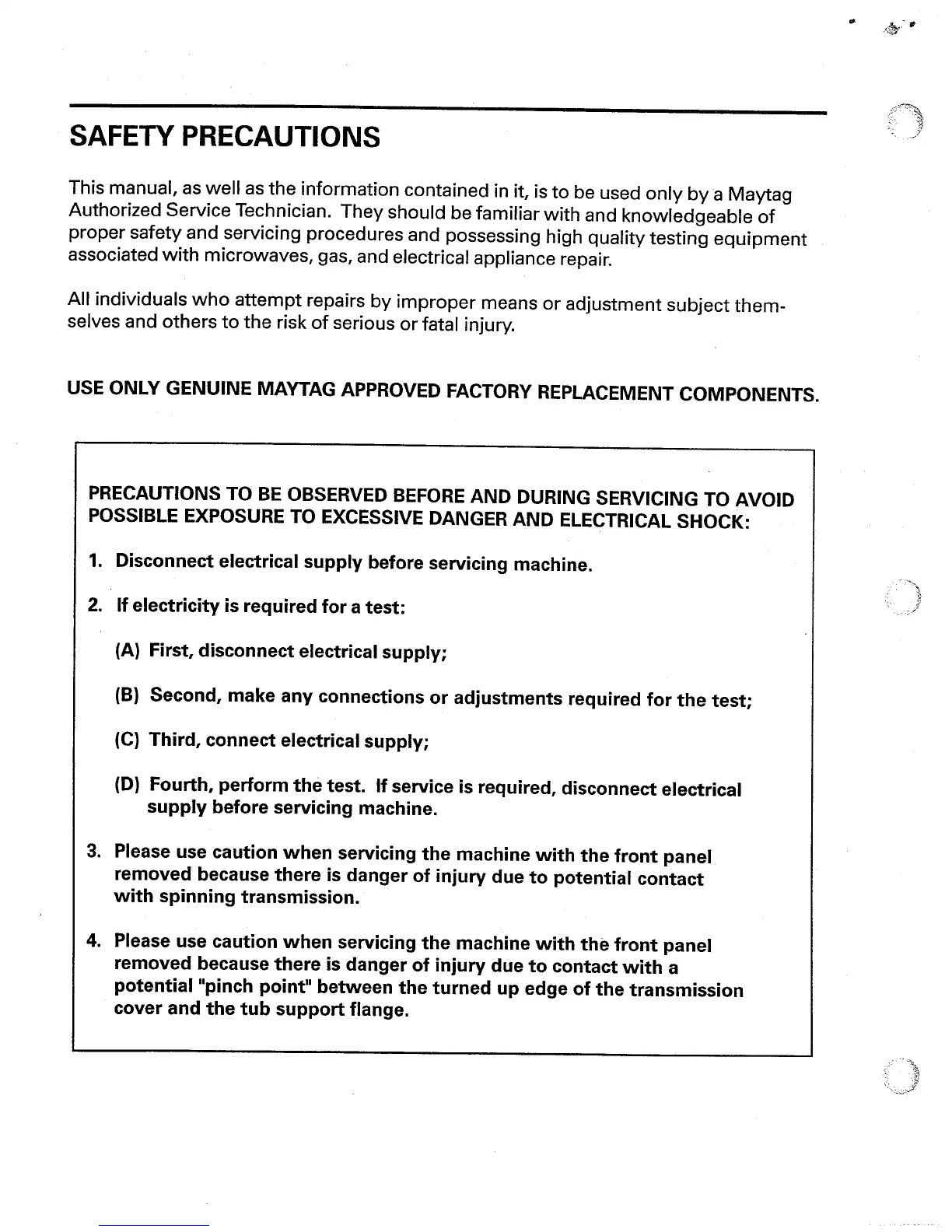 Maytag MAV4057 - SAFETY PRECAUTIONS; General Safety Warnings