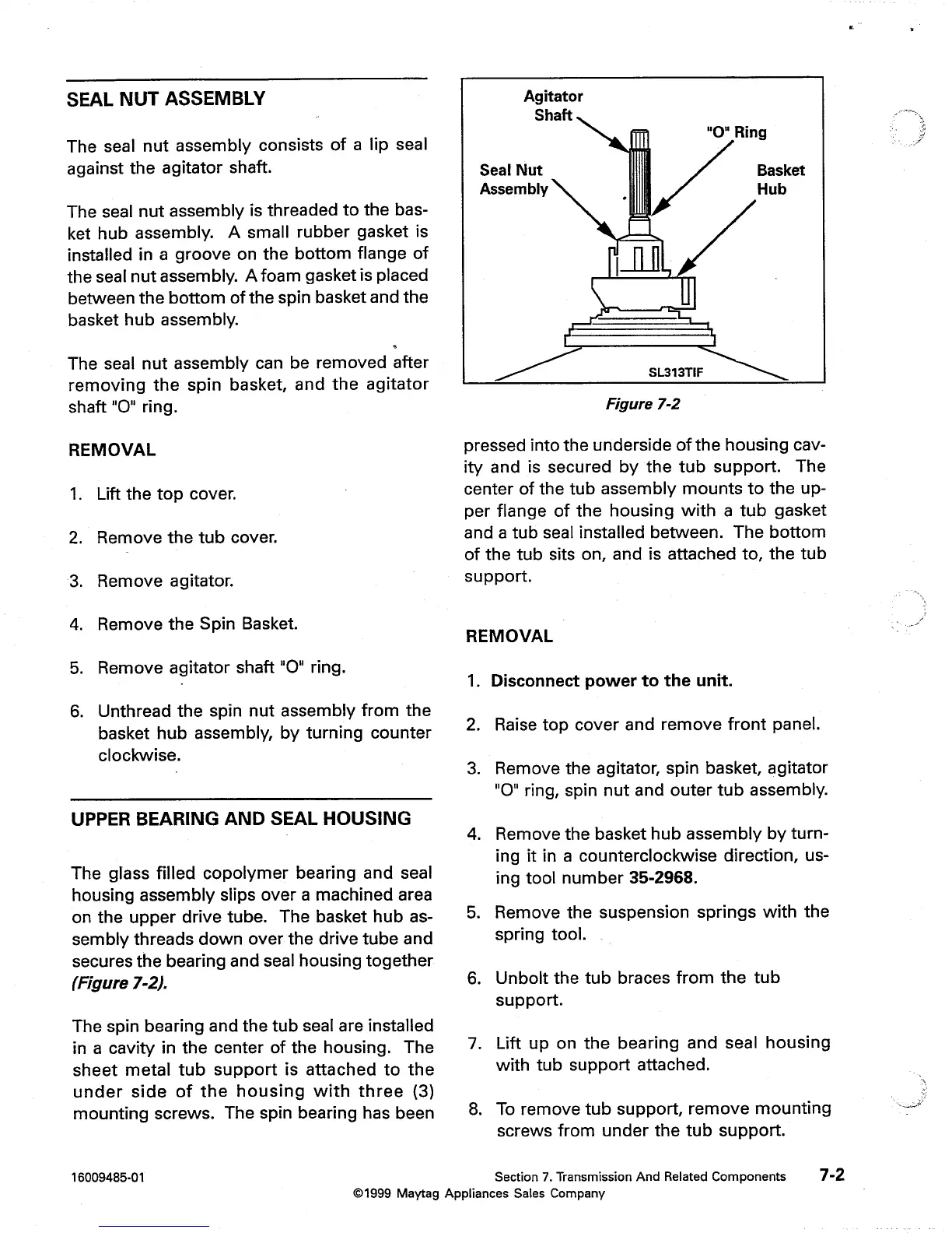 Maytag MAV6300 - SEAL NUT ASSEMBLY; UPPER BEARING AND SEAL HOUSING