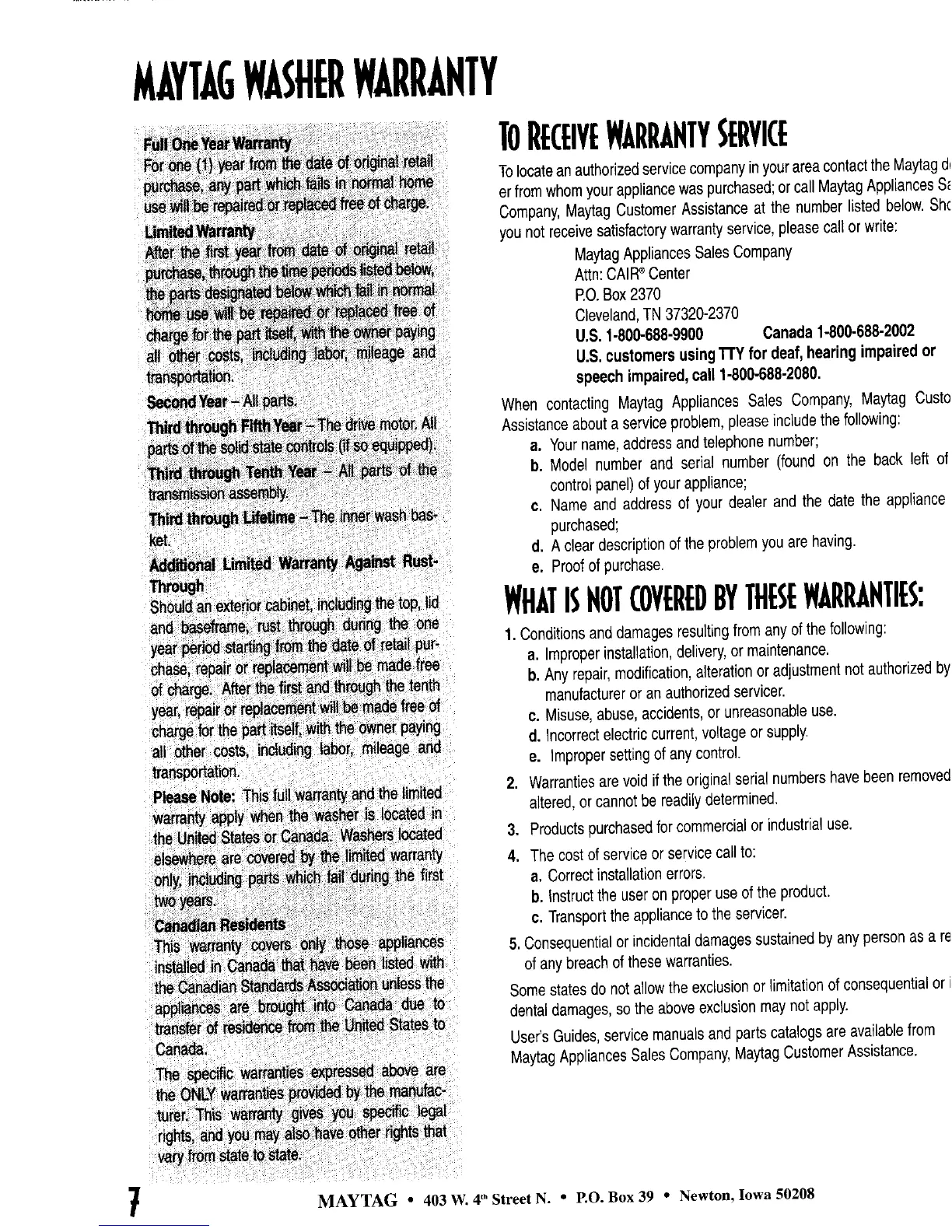 MAYTAGWASHERWARRANTY