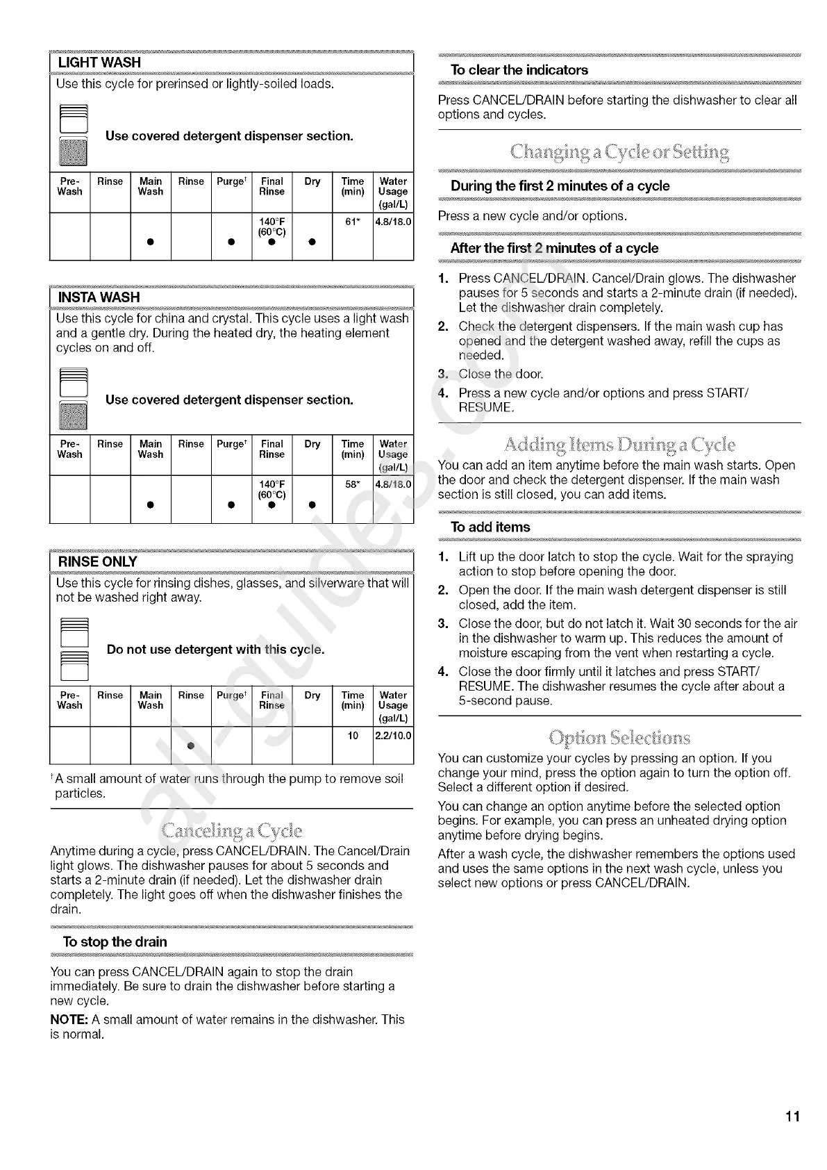 Use this cycle for rinsing dishes, glasses, and silverware that will